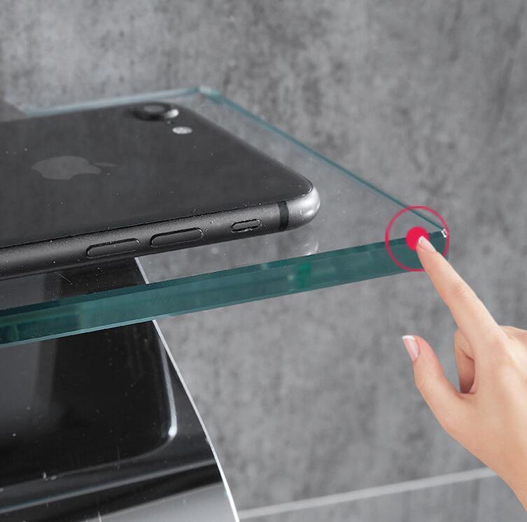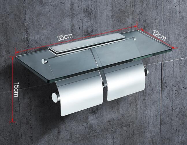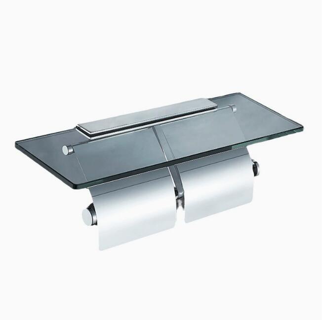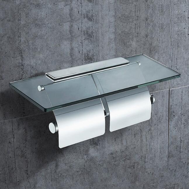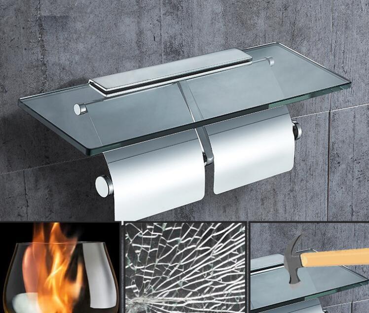 新入荷新品トイレット ペーパー ホルダー ガラス 棚付 インテリア 洋風 北欧 トイレ 壁掛け おしゃれ 収納 (ダブルタイプ)