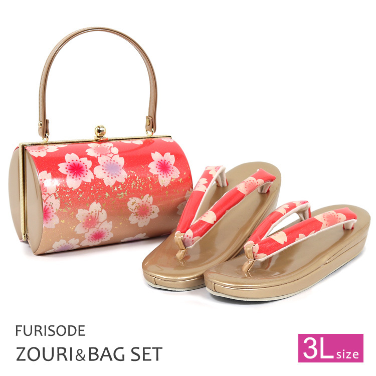 振袖用 草履バッグセット 3Lサイズ 結婚式 成人式 卒業式 エナメル 草履 バッグ 大きいサイズ ゴールド 金 ゾウリバッグ 7