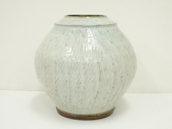 ys7327651; 丹波焼 柴田雅章造 白釉紋押大壷(共箱)【道】