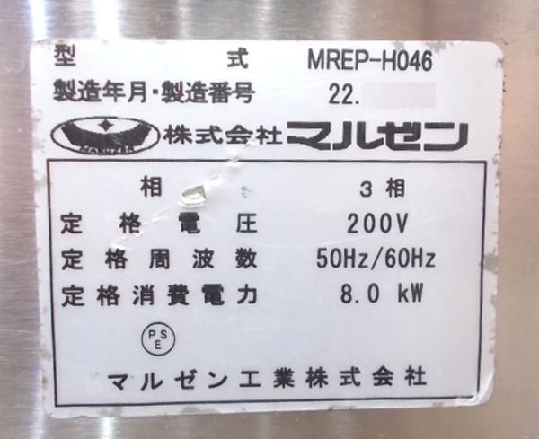 マルゼン 2022年 電気式パスタボイラー MREP-H046 ゆで麺機 400×600×800 中古厨房/25C2612Z
