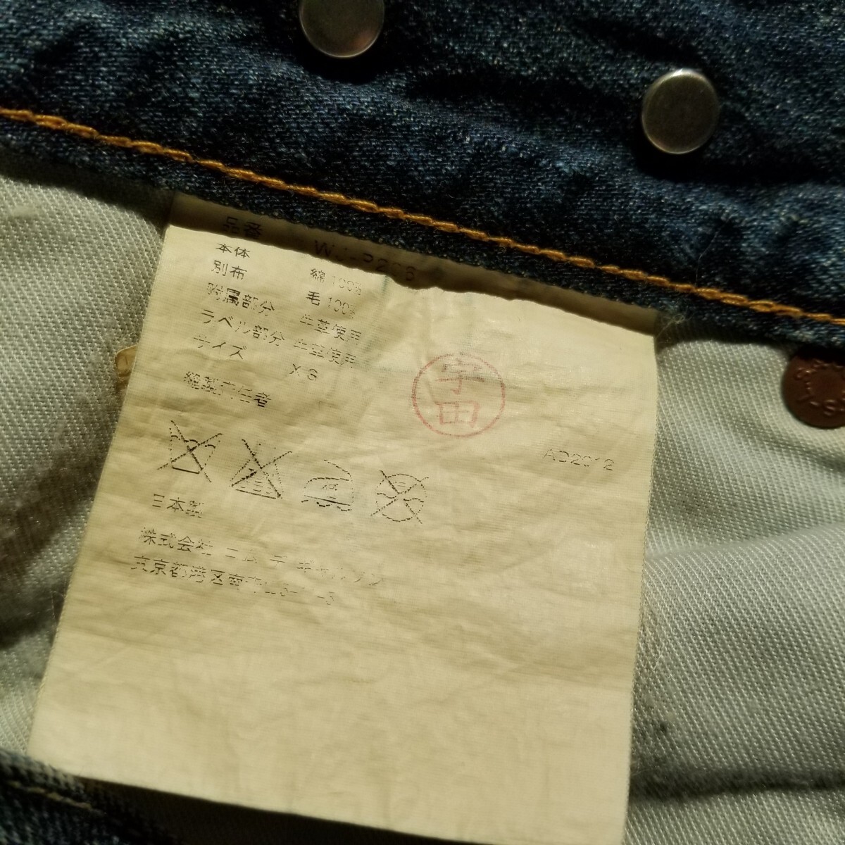 実寸:ウエスト88cm/股上28cm/股下72cm/ワタリ29cm