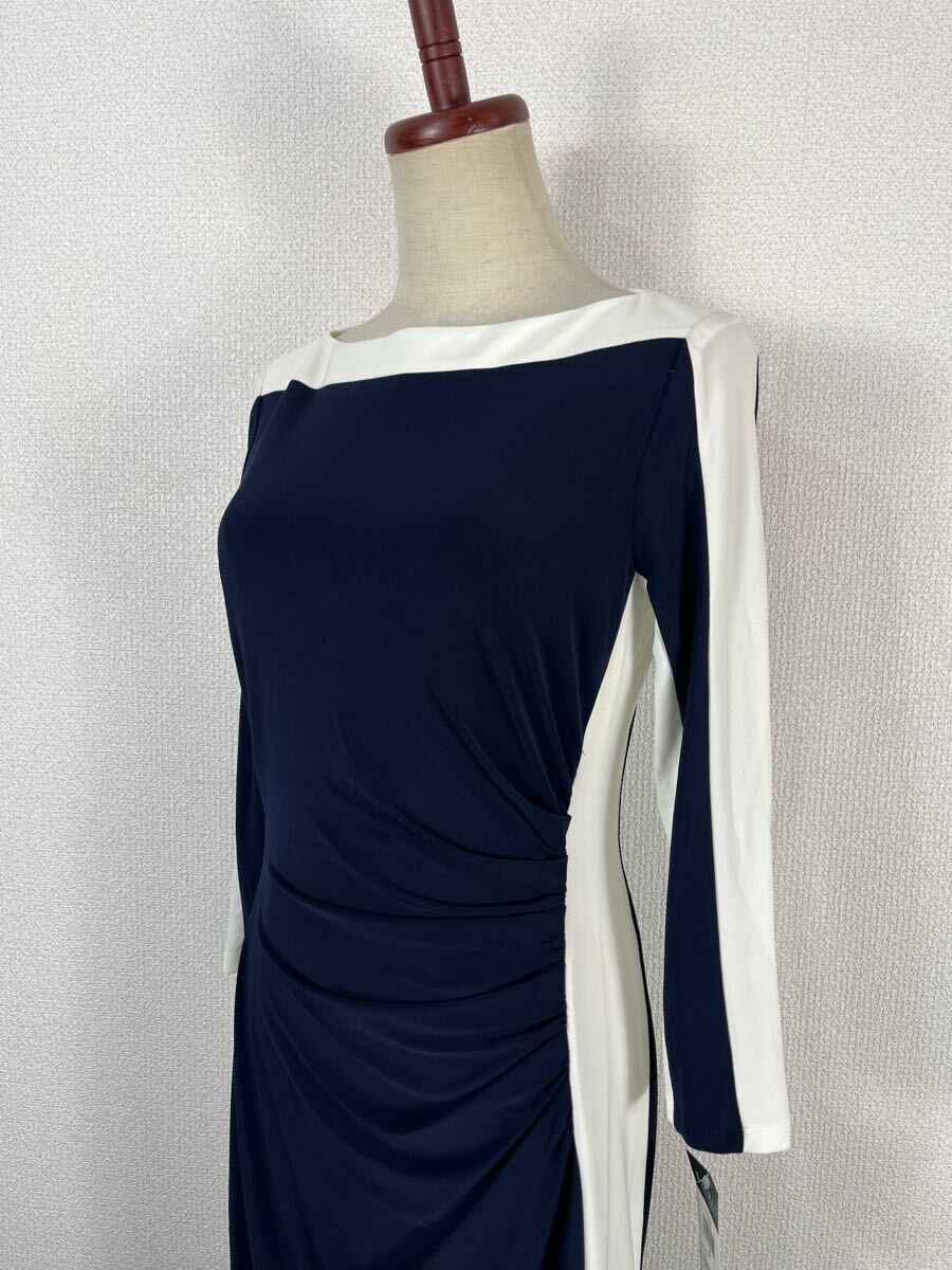 バイカラーデザインとウエスト付近のギャザーが上品なワンピースです!
