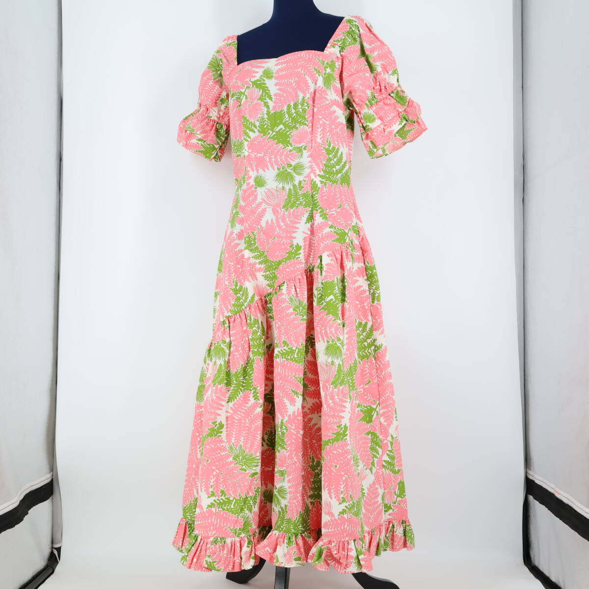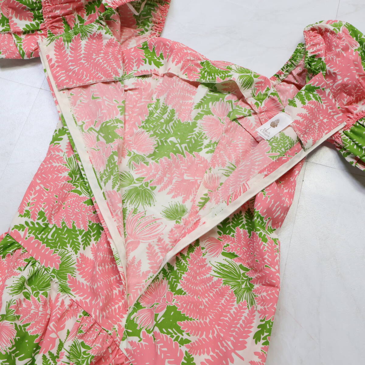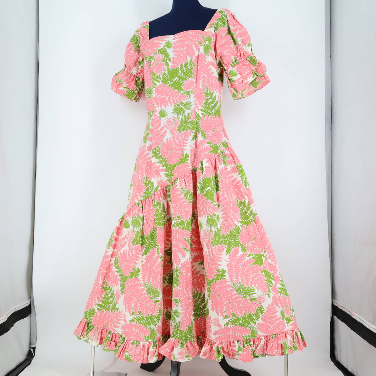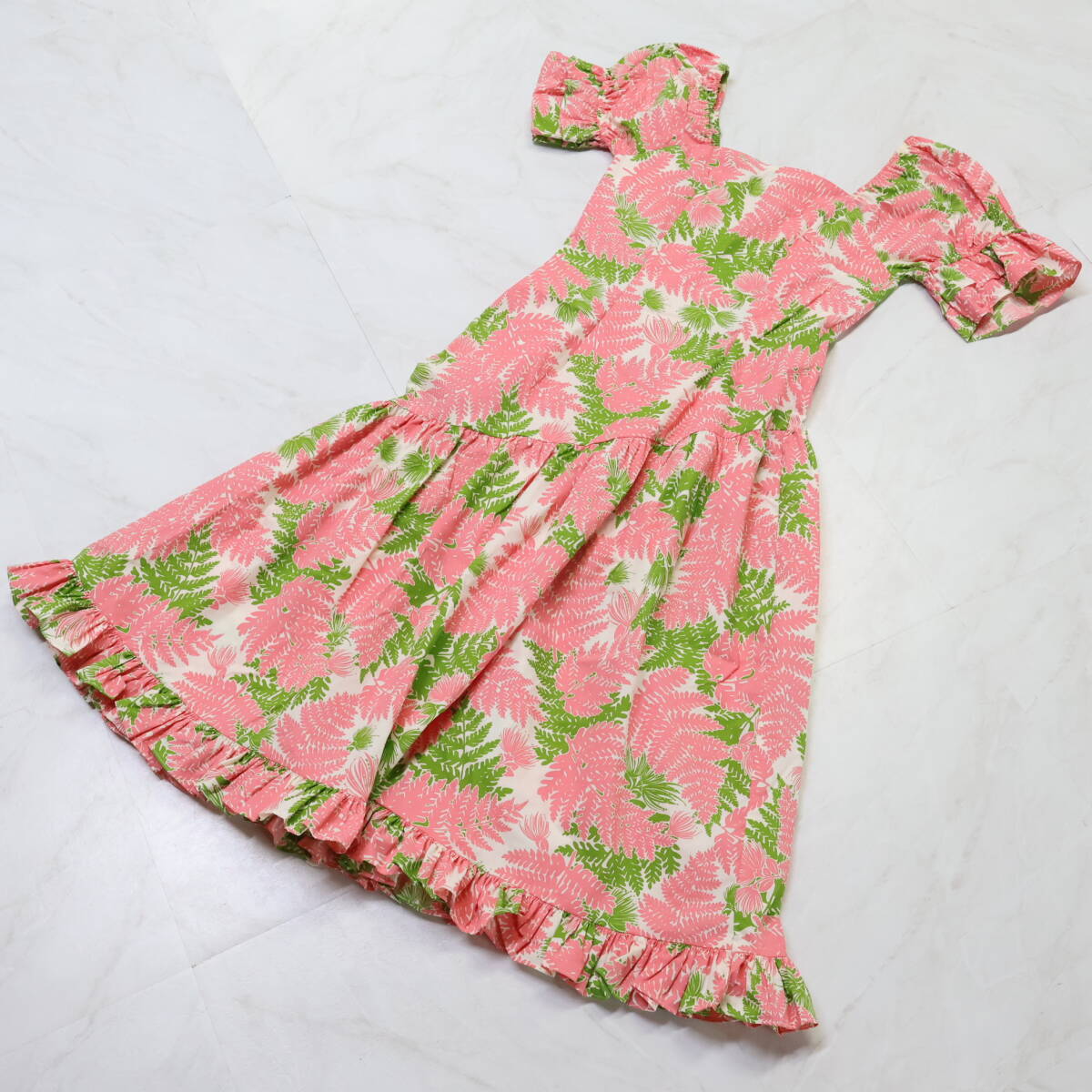 | 商品説明 | 【商品名】フラダンス衣装 ワンピース ドレス 【サイズ】M表記 平置き実測:総丈約126cm(裾~肩部まで)、身幅約44cm、ウエスト約41cm ※実測の為、多少の誤差はご容赦願います 【仕様】 ・背面ファスナー仕様 ・伸縮性無し ------------------------------------ 【ポイント】 ▽TorchGinger トーチジンジャー ハワイ製 ▽白×ピンク×黄緑 ▽全面にあしらったハワイアンプリント ------------------------------------ 【撮影時使用トルソー:女性用トルソー9号(一般的に使用されるサイズです)】 トルソーサイズ詳細 肩幅約37cm、バスト約88cm、ウエスト約66cm、ヒップ約89cm |