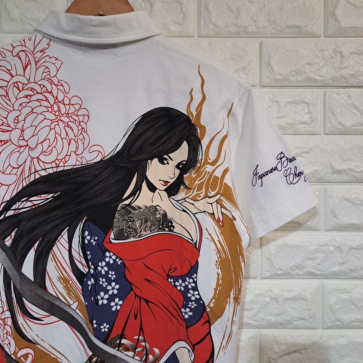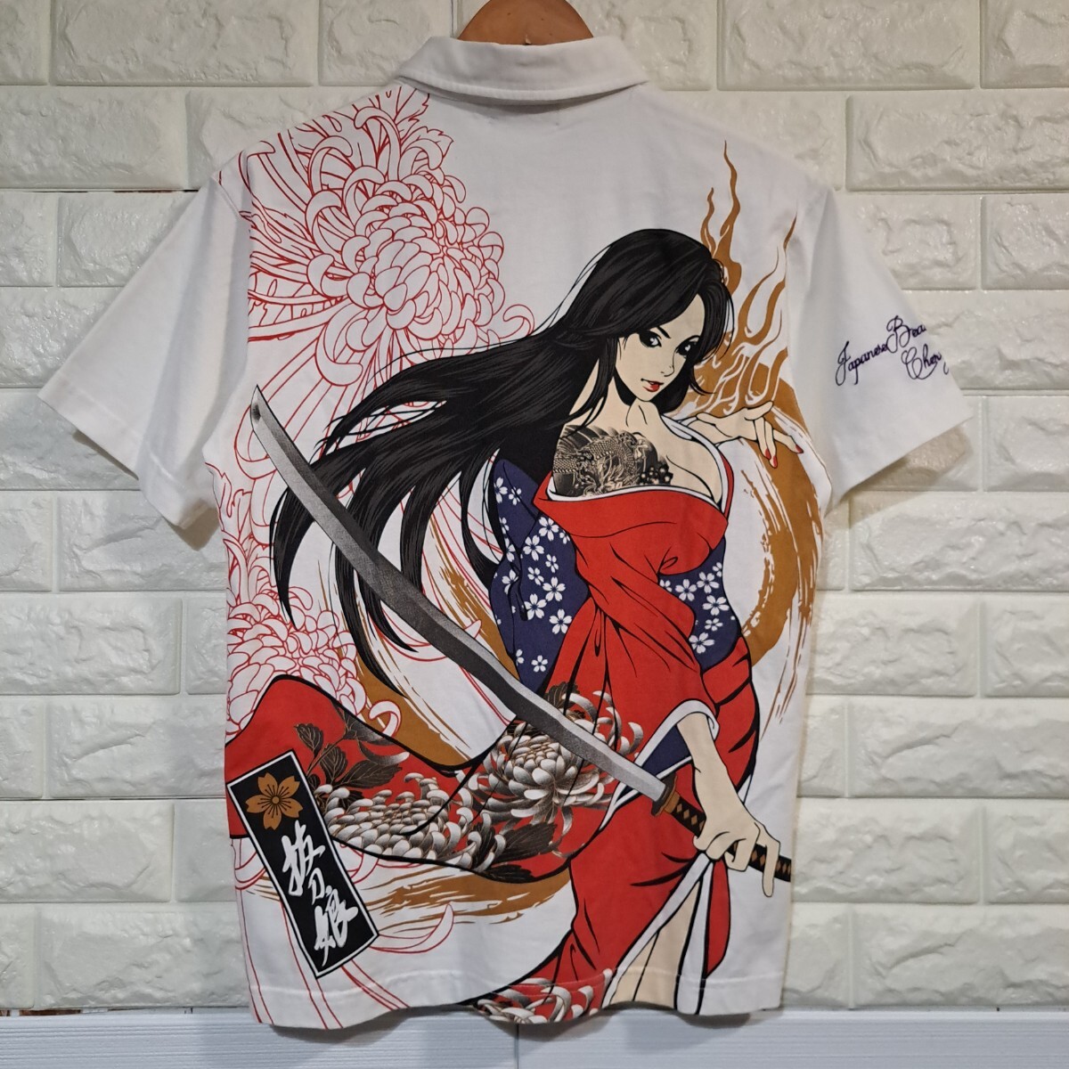 ◆和柄の人気ブランド絡繰魂の姉妹ブランド 抜刀娘 の 半袖 ポロシャツ です