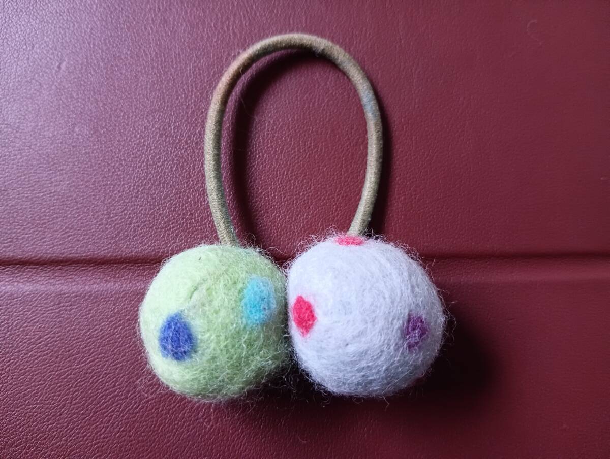ポンポンの位置が変えられるヘアゴムになります。水玉ドット柄の模様も可愛いです(*^^*)☆☆