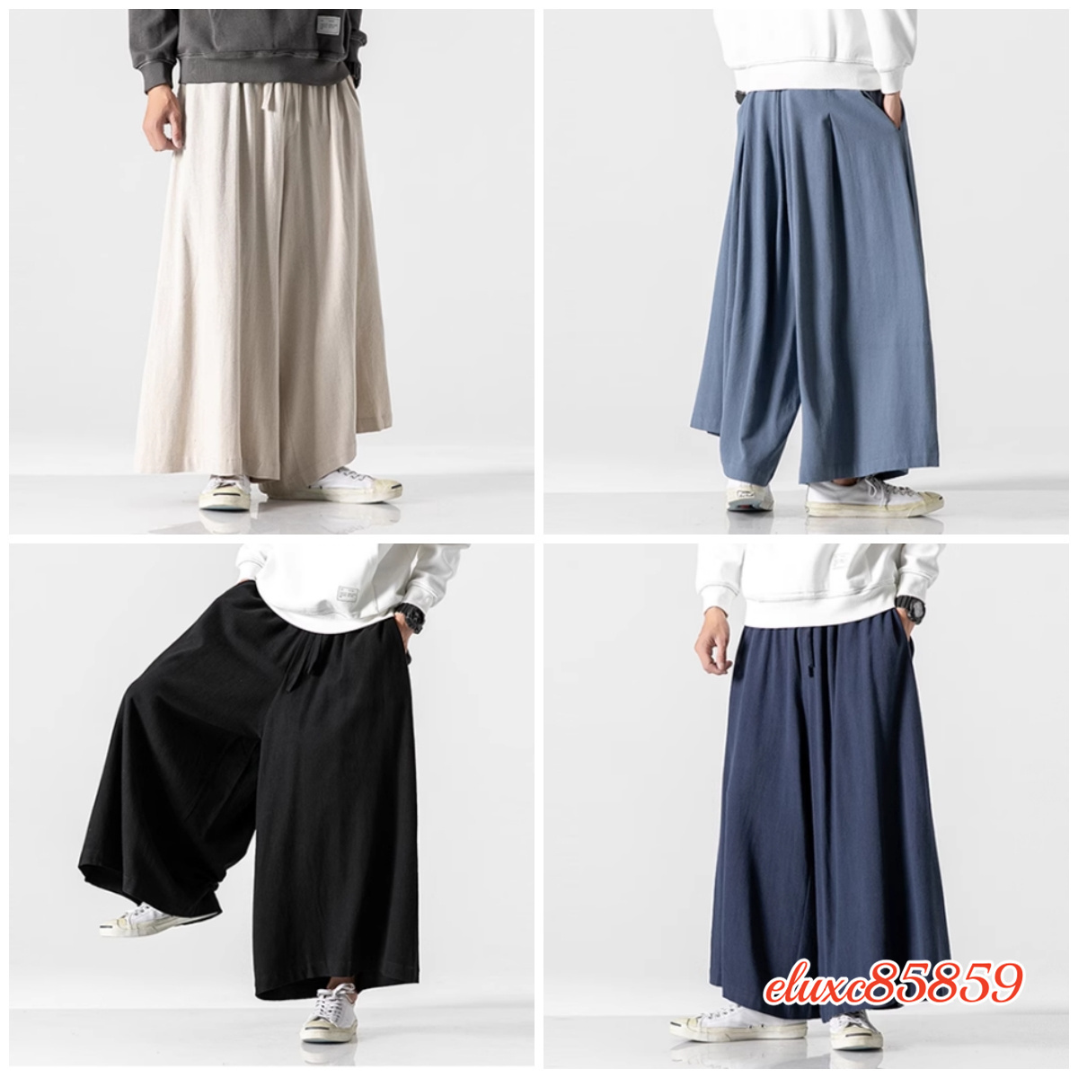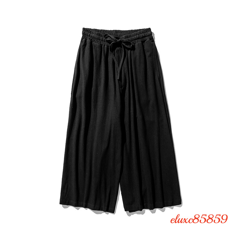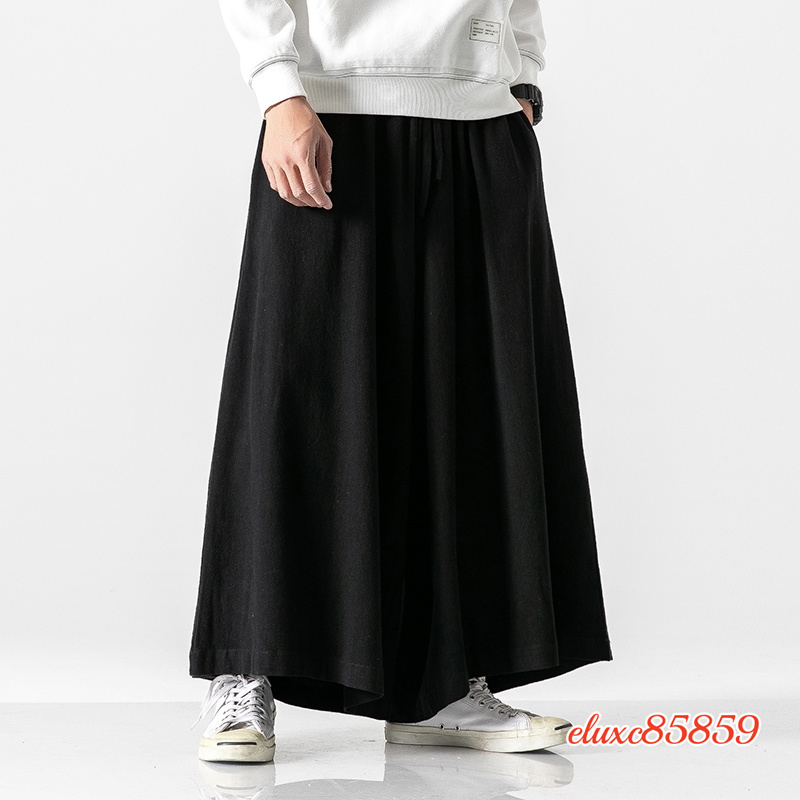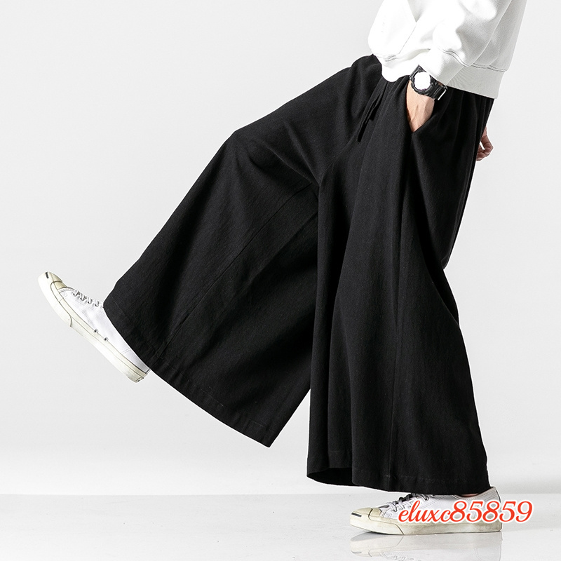 特売 春夏新品 サルエルパンツ メンズ リネンパンツ 無地 ストレート ロングパンツ ワイドパンツ ゆったり サイズ選択可L ブラック