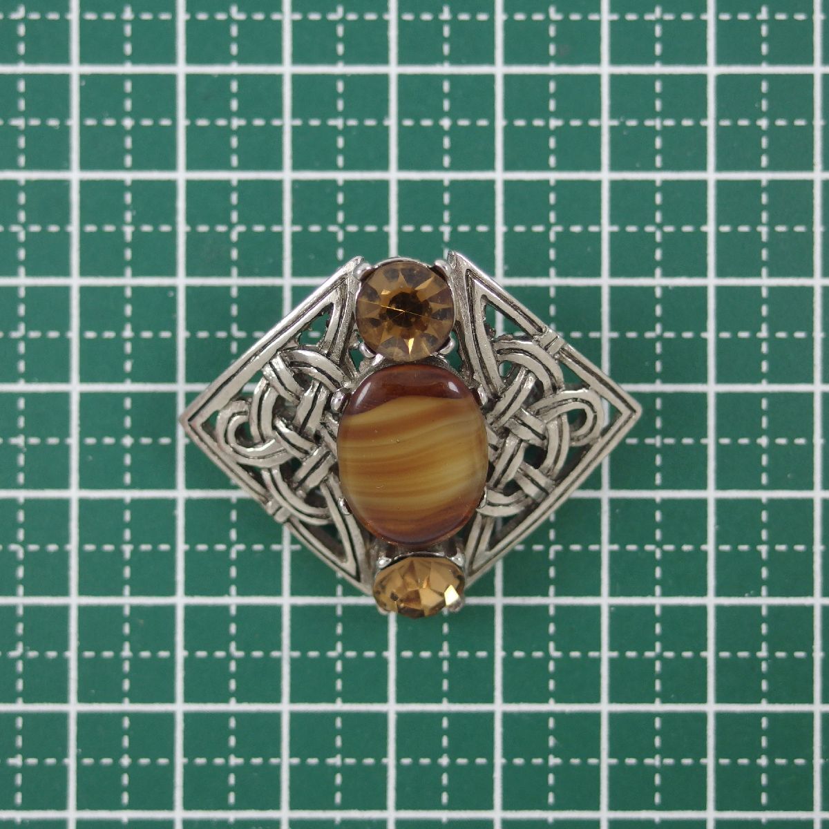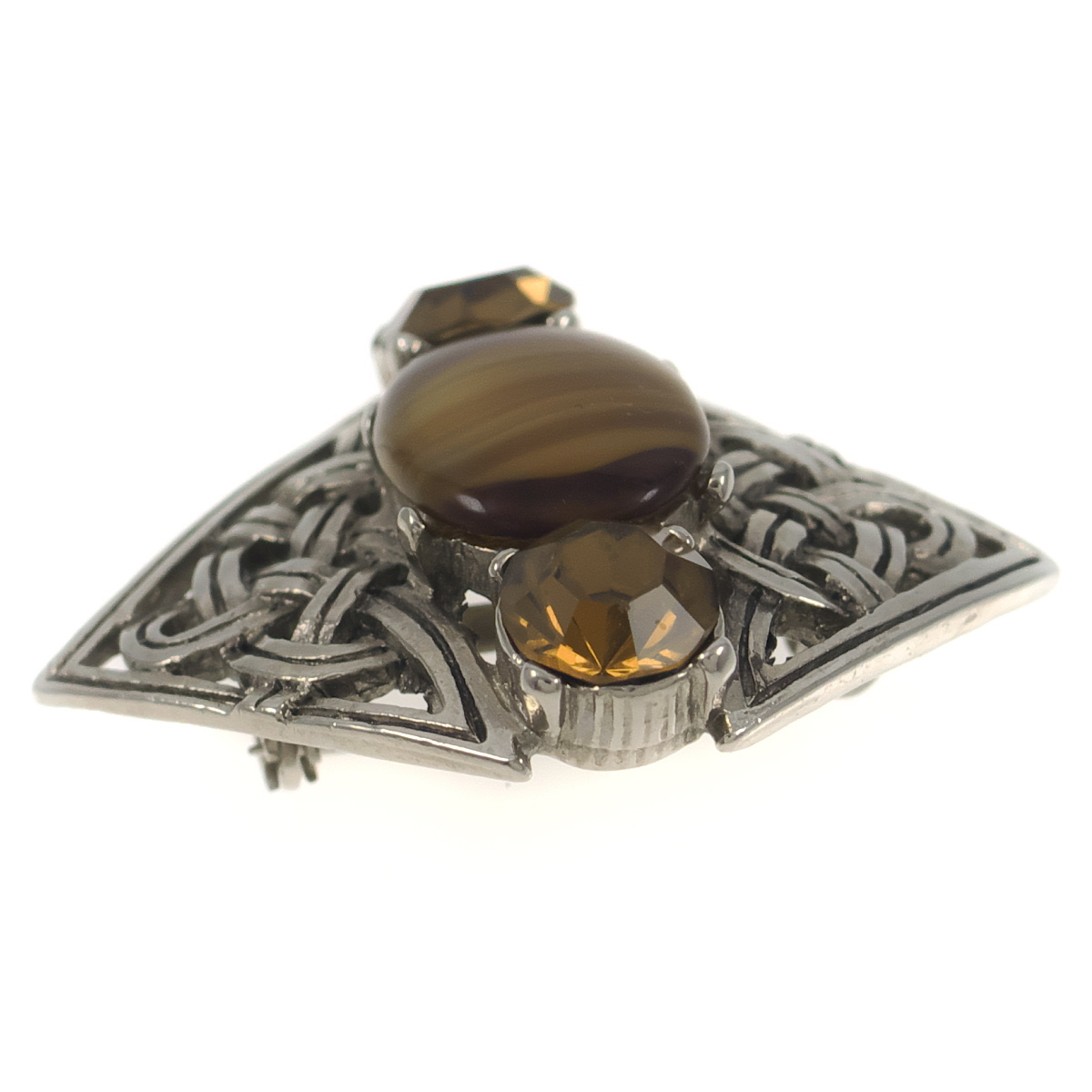 UK3418◆ ケルト模様 ノット 三角形 ブラウン系 マーブルストーン 色石 ◆ ヴィンテージブローチ ◆ イギリス 英国 ◆