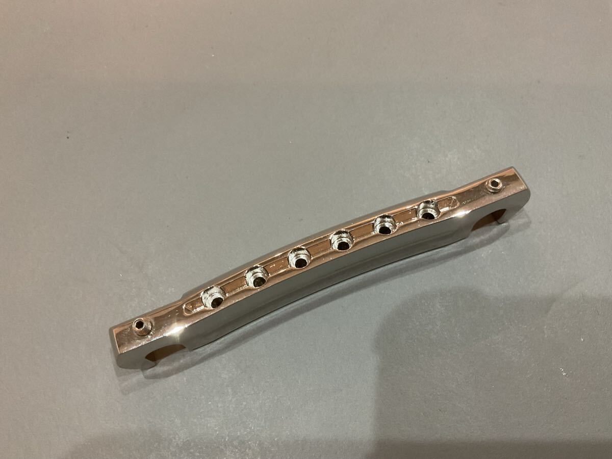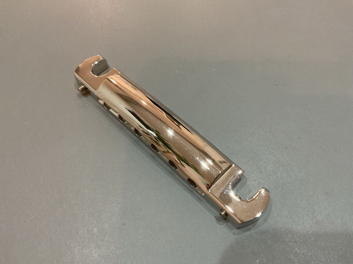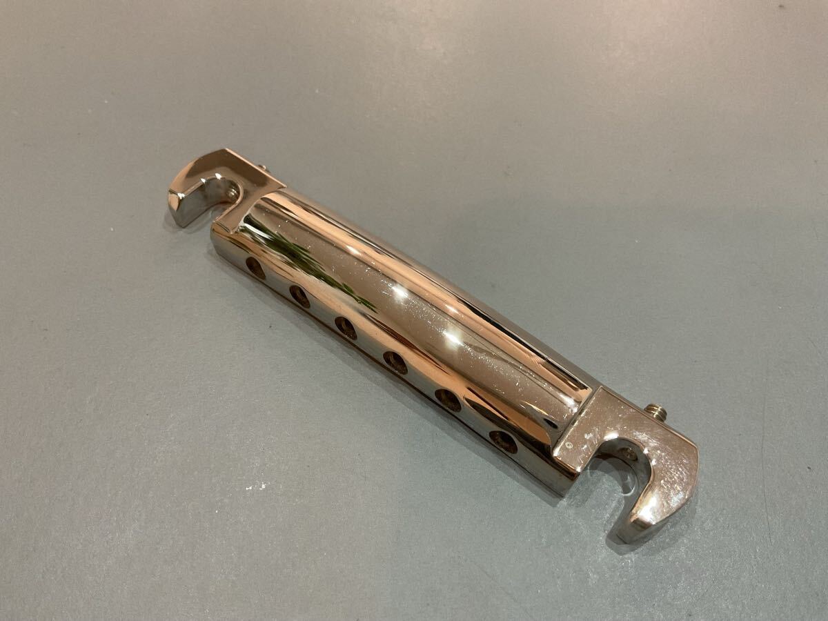 マーフィーラボのレスポールジュニアのテールピースです。サドルなしの軽い初期タイプのアルミで通常のテールピースでラップアラウンドは珍しいです。