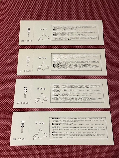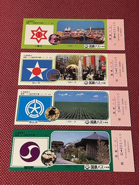 北海道地方 国鉄バス沿線市町村章シリーズ乗車券 No.1〜No.4 (管理番号101-40)