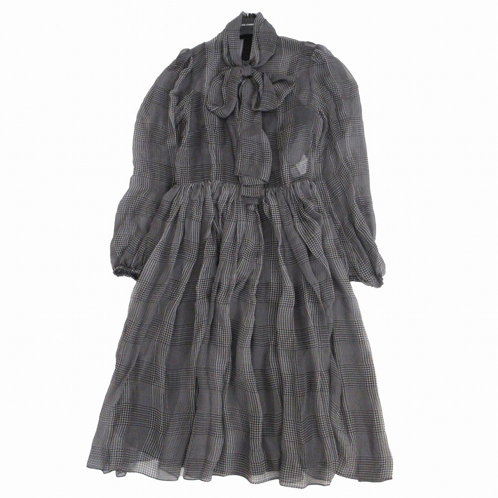 ・商品名【DOLCE&GABBANA ドルチェアンドガッバーナ グレンチェックプリント シルクシフォン ドレス ワンピース F6JLJTIS1WDHH5GW グレー】