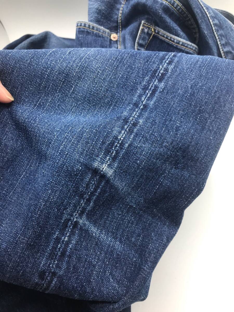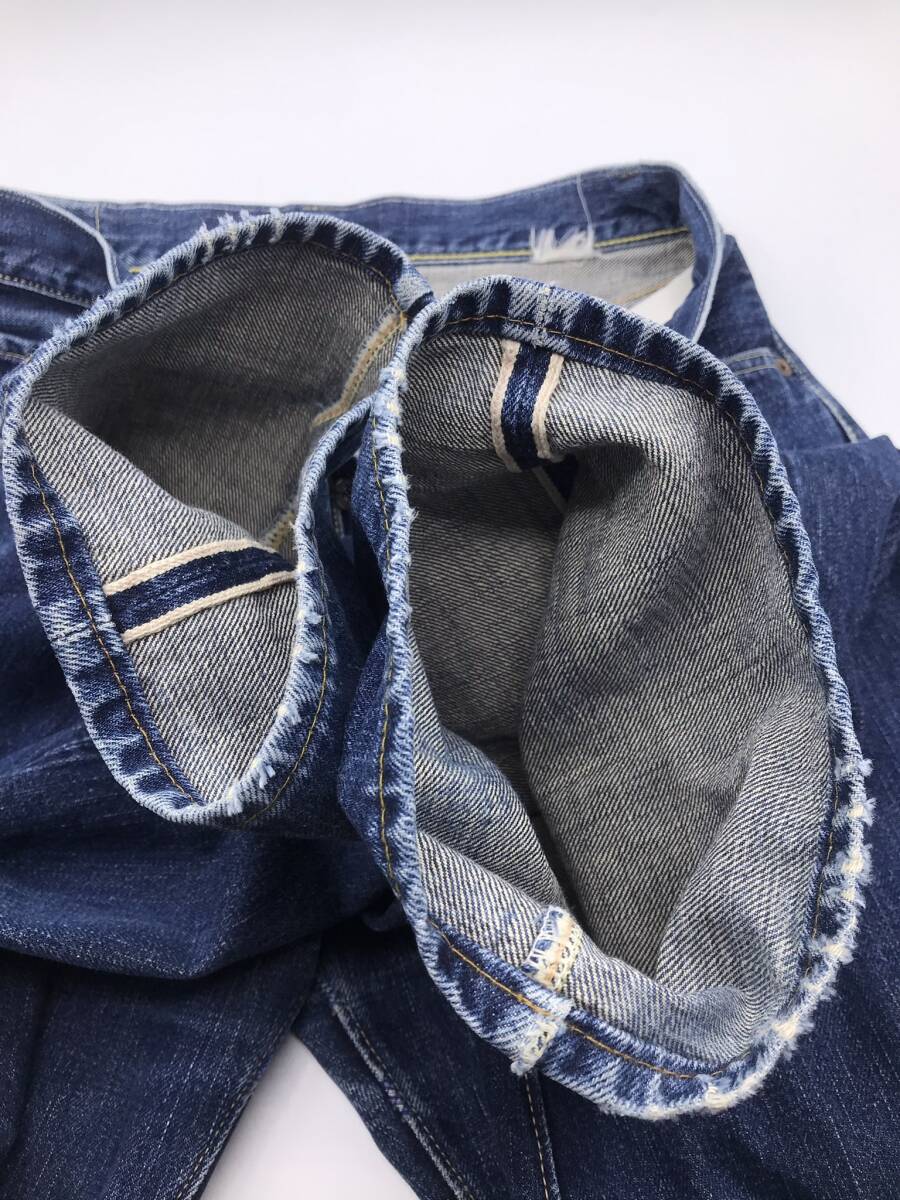 シングルで裾上げされていますが、チェーンステッチの様なアタリが出ています。
