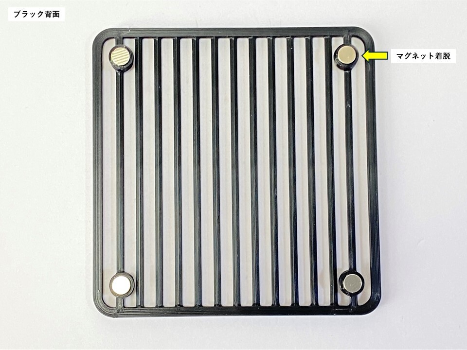 素材は、PLA(ポリ乳酸)で非常に硬い材質です。 ・音の流れをスムーズにするため格子に面取り加工をしています。 ・スピーカーユニットとグリルはマグネットで、着脱可能です。