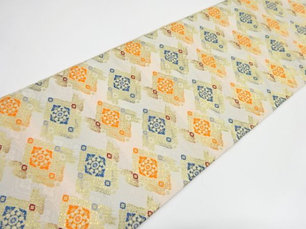 ys7347819; 花菱模様織り出し丸帯(材料)【アンティーク】【着】