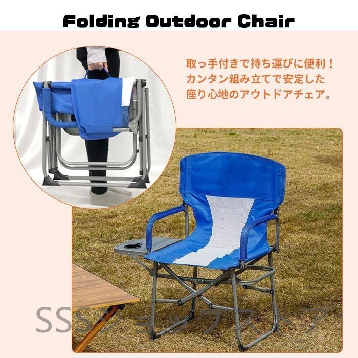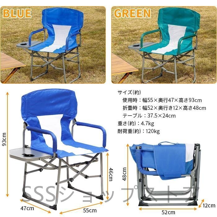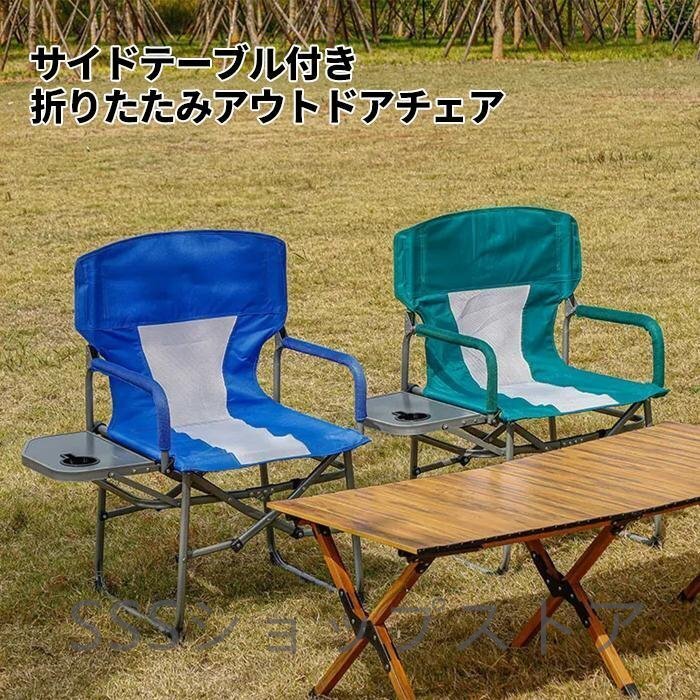 サイドテーブル付き 折りたたみ アウトドア チェア キャンプ 椅子 耐荷重 120kg テーブル付き 軽量 折りたたみチェア グリーン