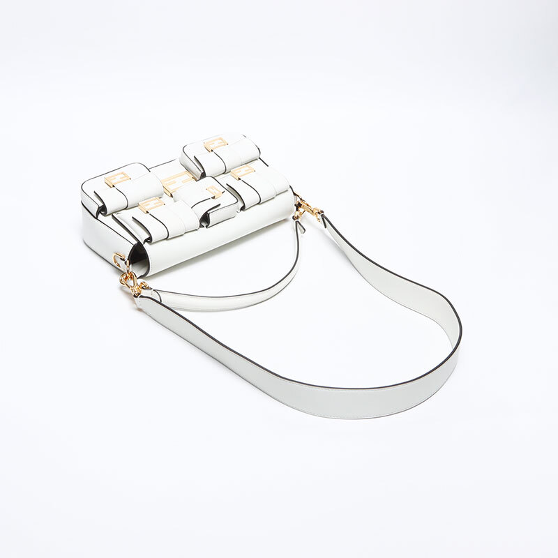フェンディ FENDI ショルダーバッグ マルチポケット レザー バケット ホワイト