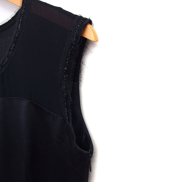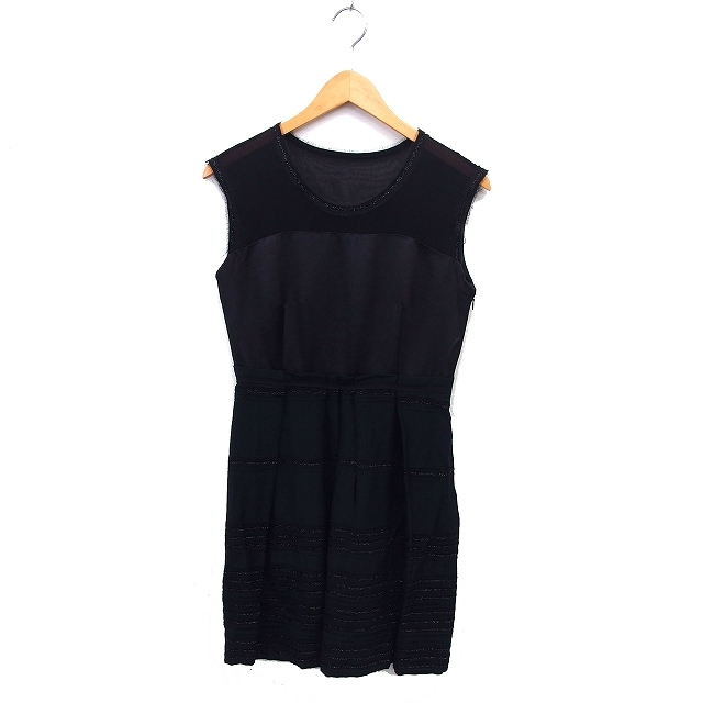 ボールジー BALLSEY トゥモローランド シフォン フレア ワンピース ミニ ボーダー ノースリーブ サイドジップ 38 黒 ブラック /NT27