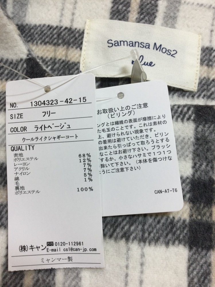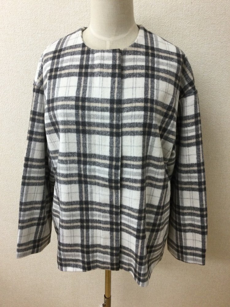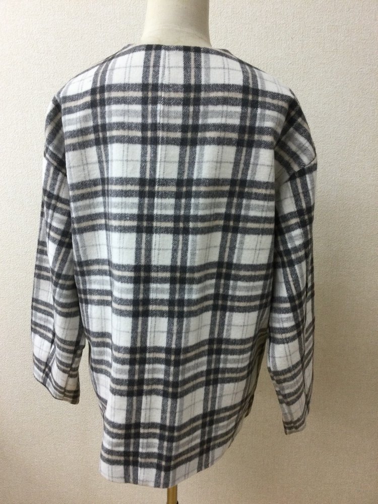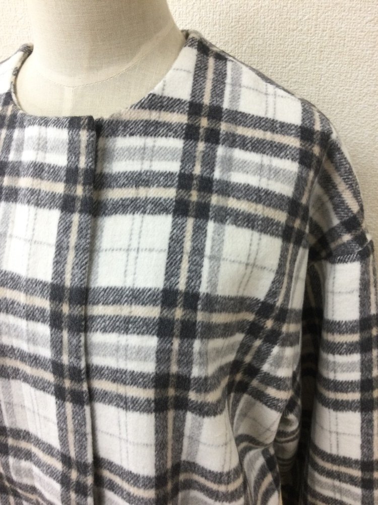 | 管理番号:135457 SM2 タグ付き未使用 ウールライクシャギーコート アイボリーにグレーチェック 表示サイズ:フリー 実寸(参考)