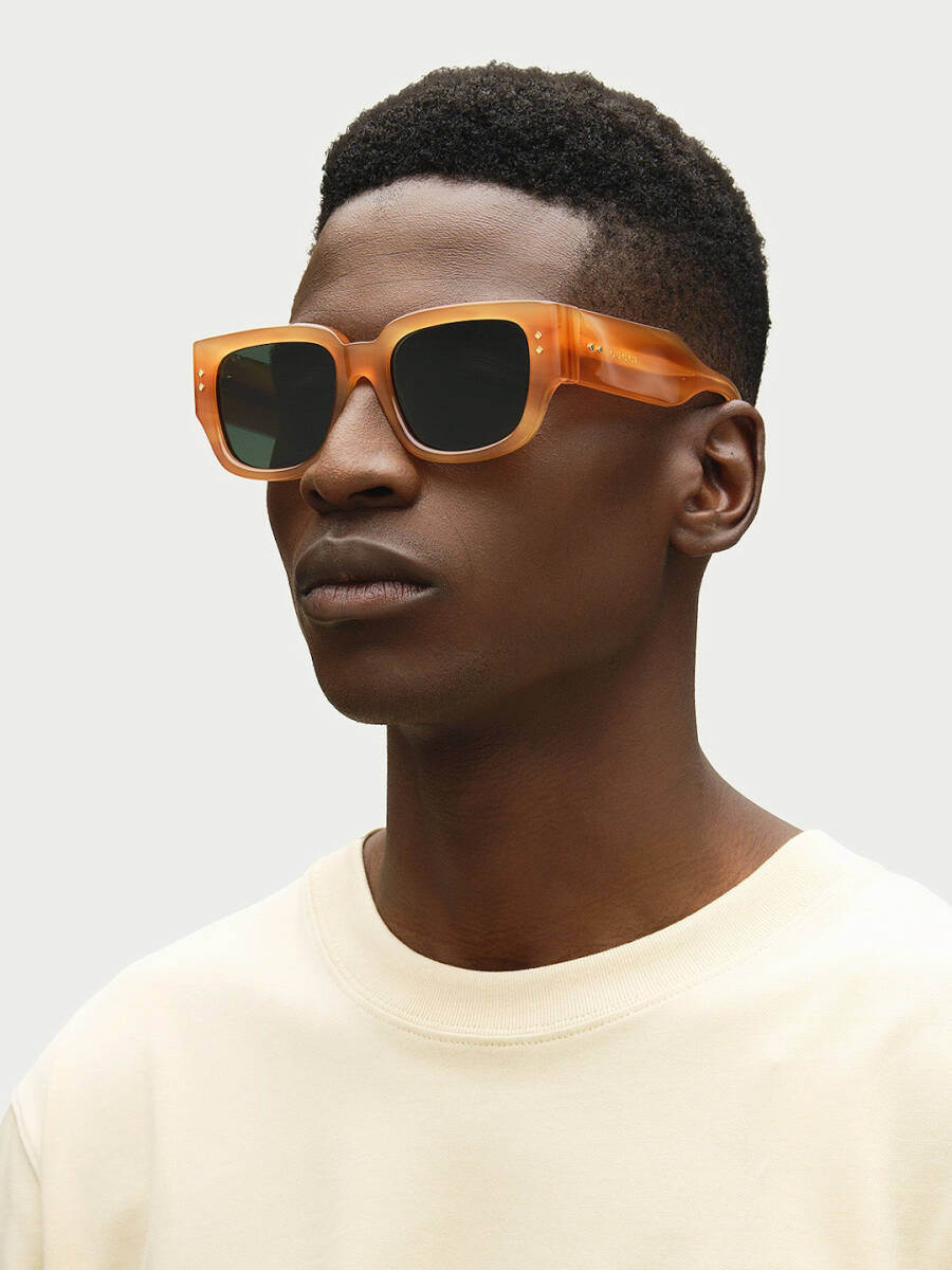 新品 正規品 定価55000円 グッチ 太 セル フレーム スクエア サングラス オレンジ グリーン 緑 メンズ レディース GUCCI GG1261S ミケーレ