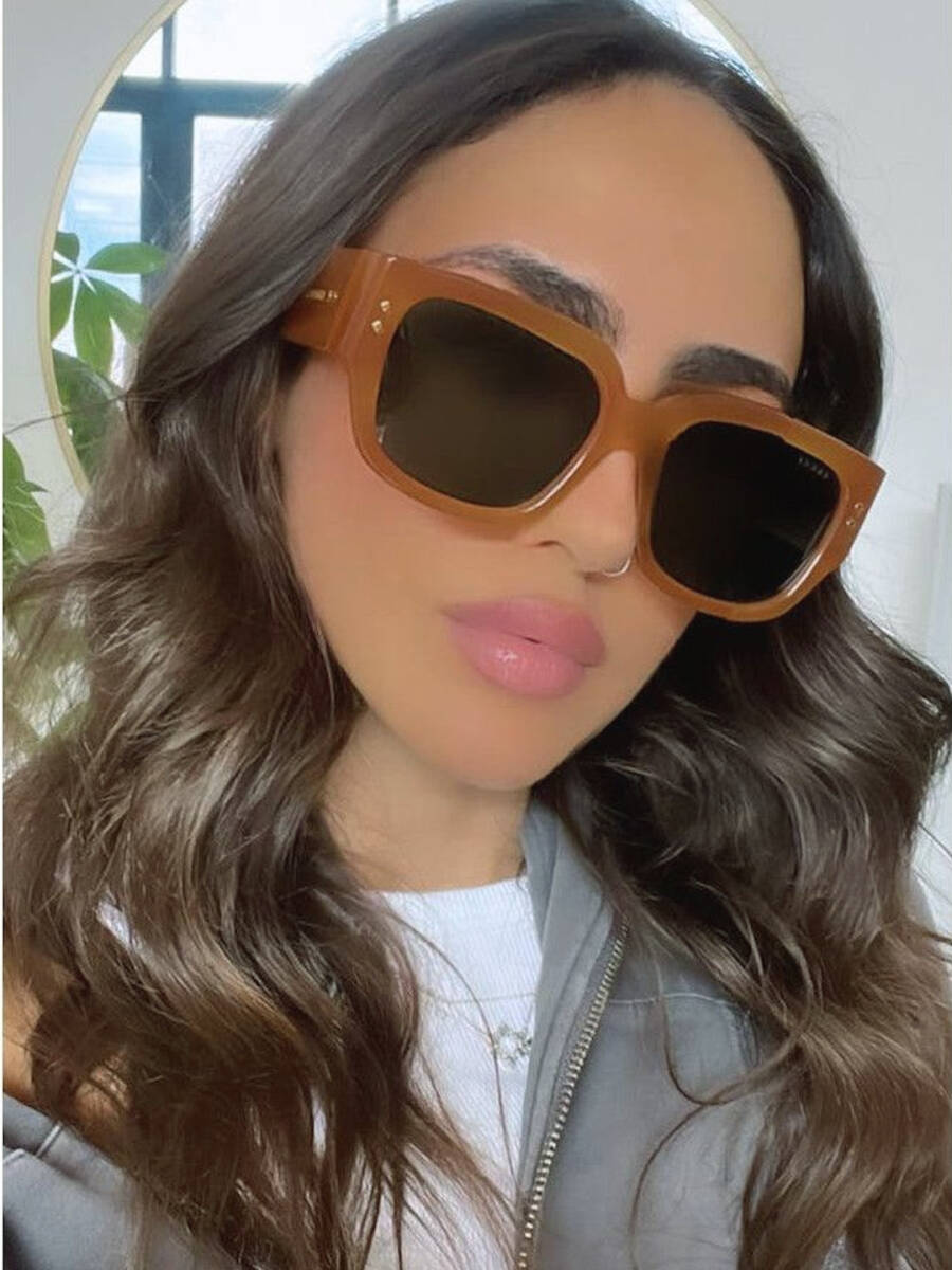 2024年購入アイテムで、67mmの太セルフレーム、スクエア型、太いテンプルなど、細部まで凝ったデザインです。