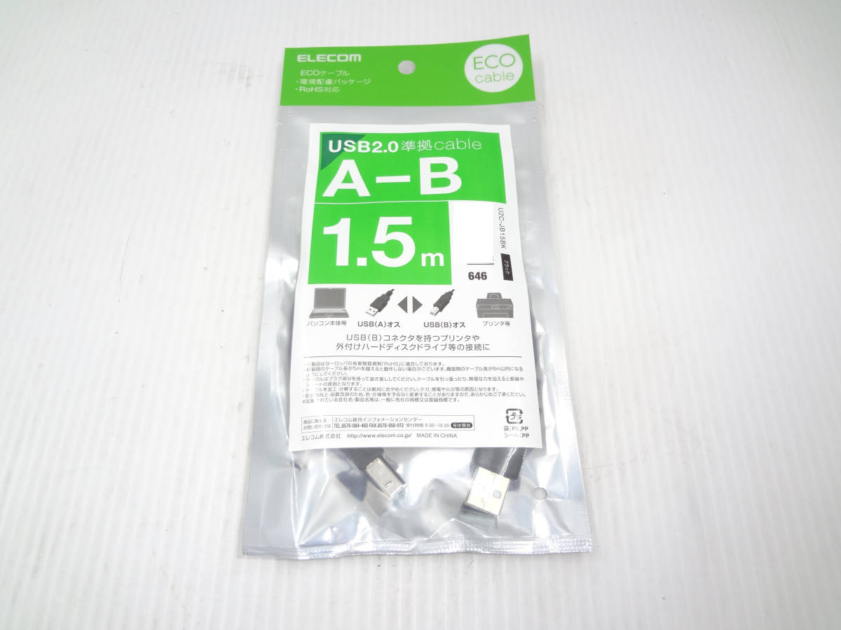 10個セット ●ELECOM エコUSBケーブル USB2.0 A-Bタイプ 1.5m U2C-JB15BK 10個セット 未使用品