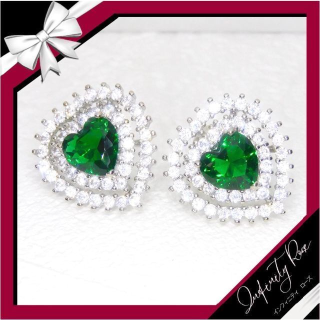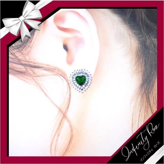 (5084)グリーントリプルハートクリスタルピアス プレゼント 高価爪留め仕様 スワロフスキー製クリスタル使用
