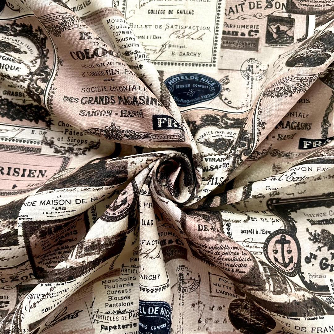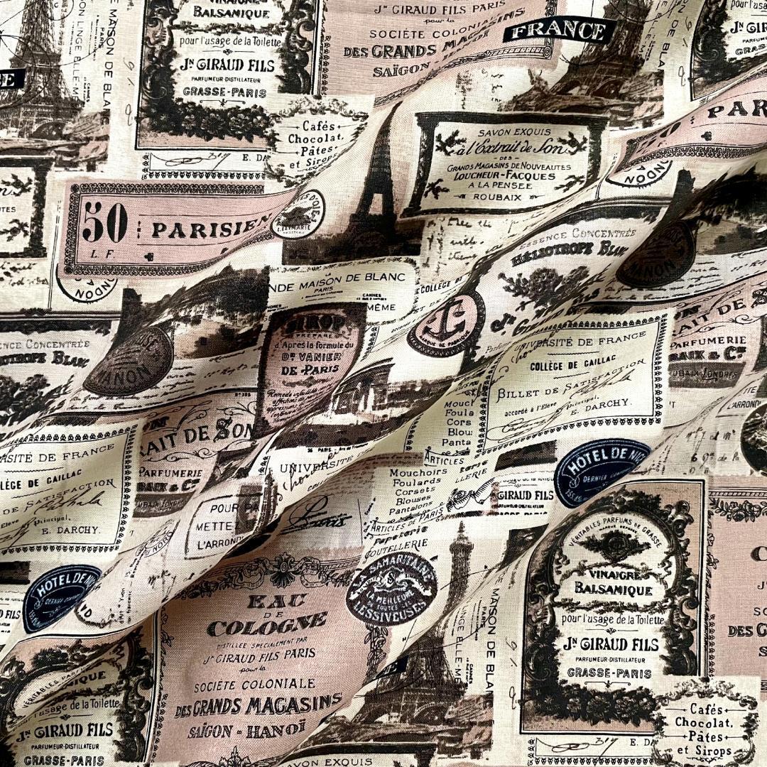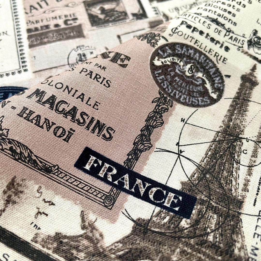 フランスの建物や、英字の文書をプリントしたコットン100%生地です。
