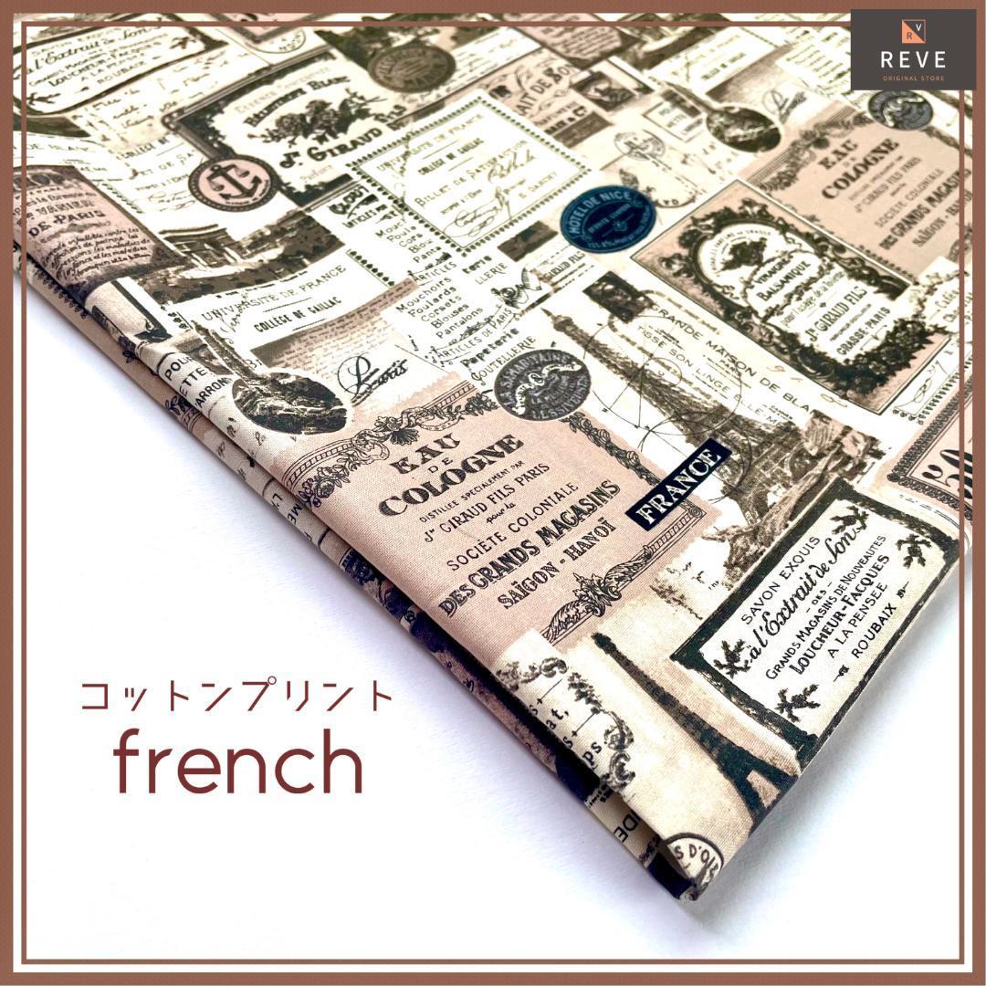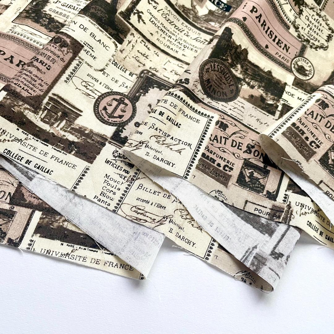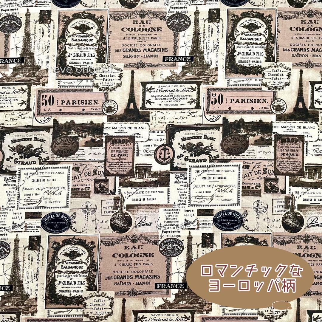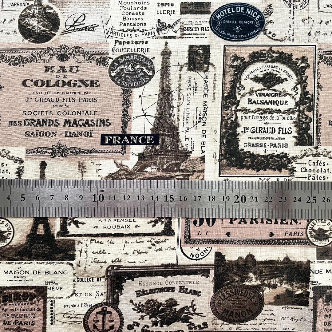 フランスの建物や、英字の文書をプリントしたコットン100%生地です。