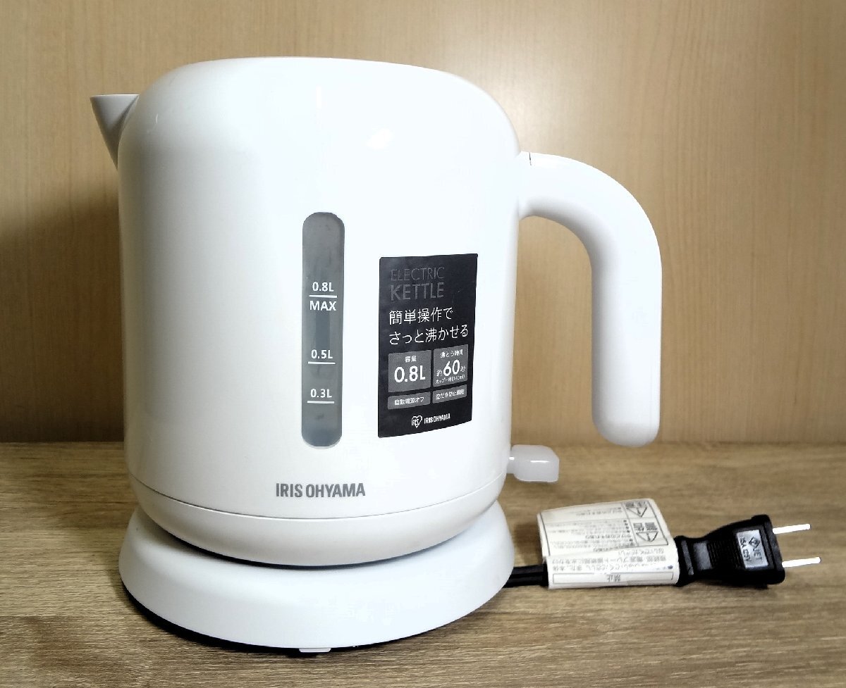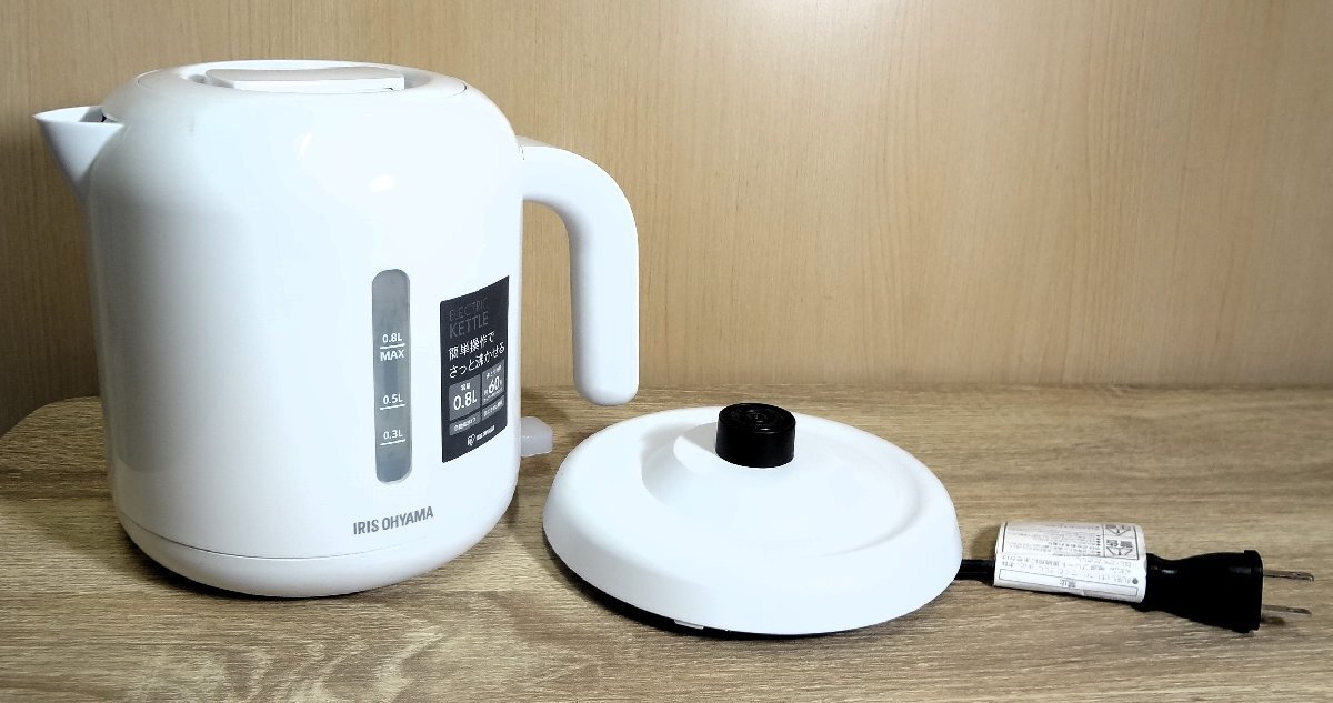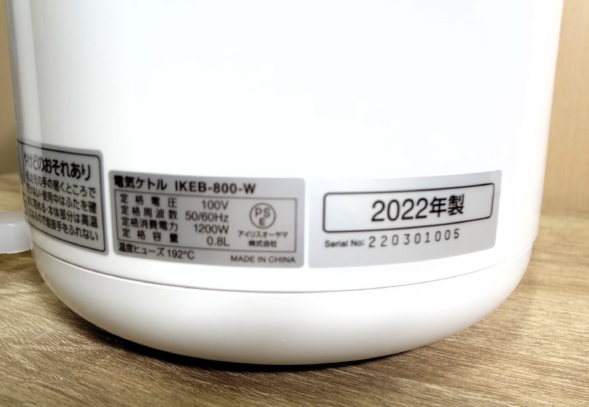【中古品】IRIS OHYAMA アイリスオーヤマ 電気ケトル IKEB-800 空焚き防止機能付き 蓋取り外し可能 ホワイト 2022年製