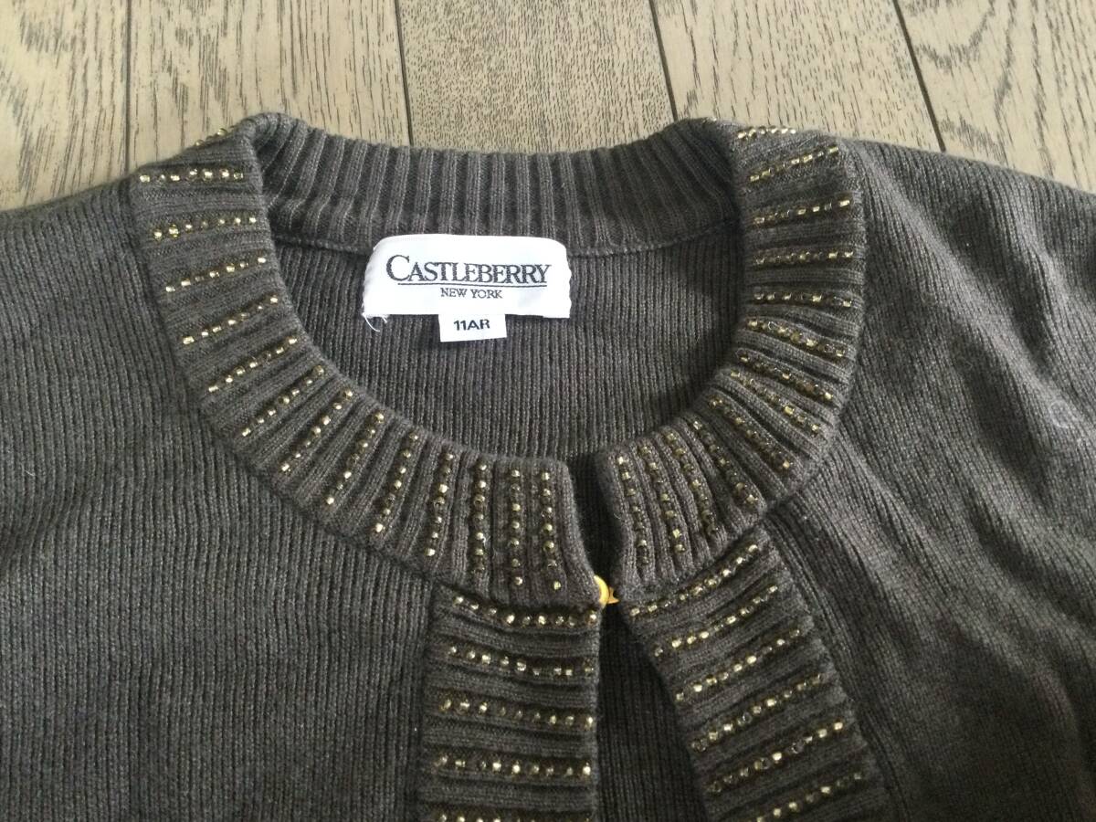 CASTLEBERRY キャッスルベリー デザイン上着 ブラウン 11AR 素材:カシミヤ50%・シルク50% 着丈:57cm 身幅:47cm 前留め具1 USED品 同日落札に限り 同梱にて発送させて頂きます。 | |||
