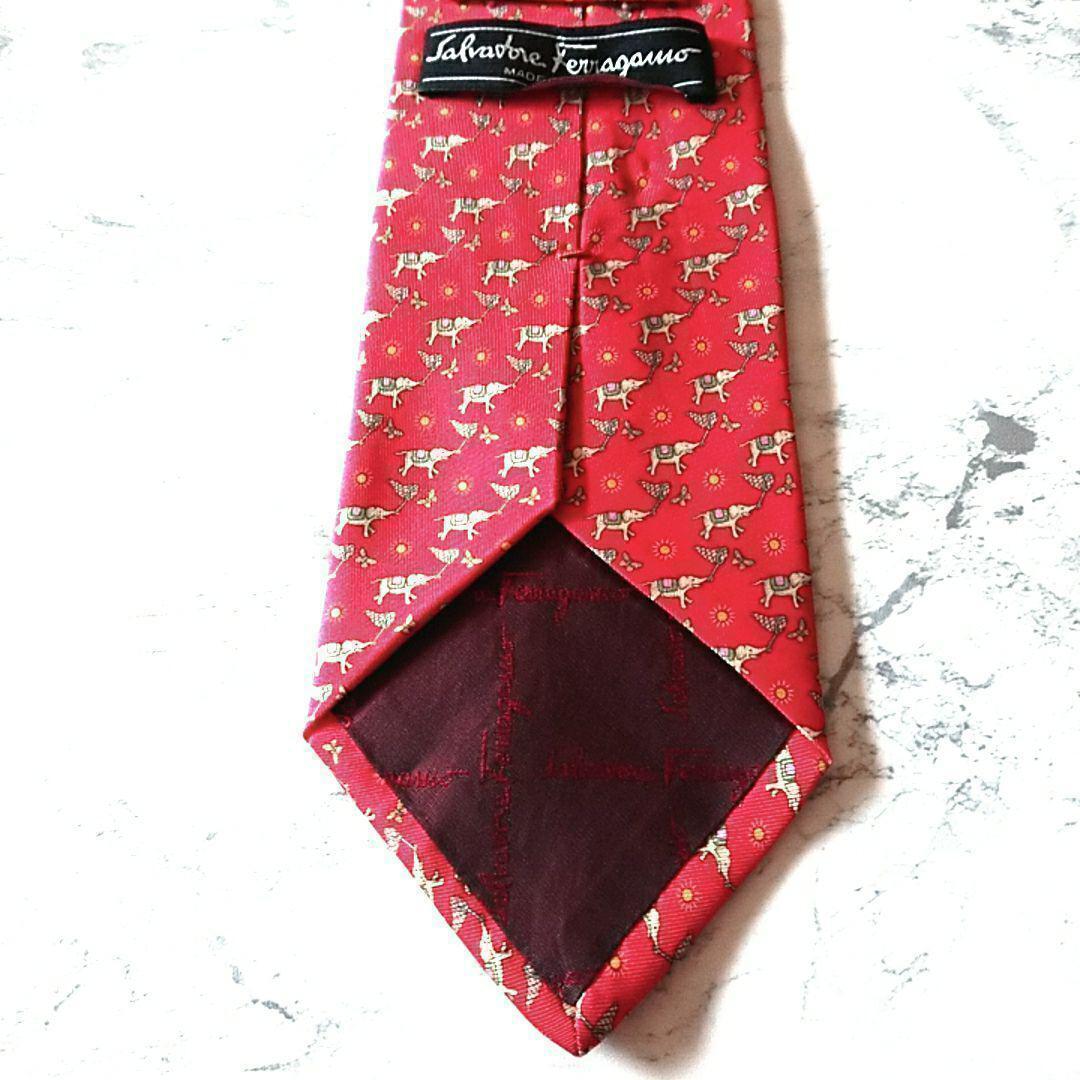 美品 サルヴァトーレフェラガモ シルク100% ネクタイ レッド ゴールド 象 サーカス 総柄