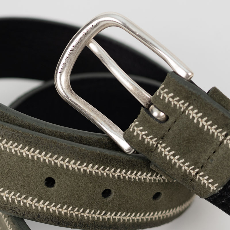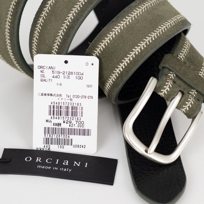 U08242【100cm】ORCIaNI | オルチアーニ メンズ イタリア製本革スエード オリーブステッチベルト 送料無料Yahoo!かんたん決済 即決価格