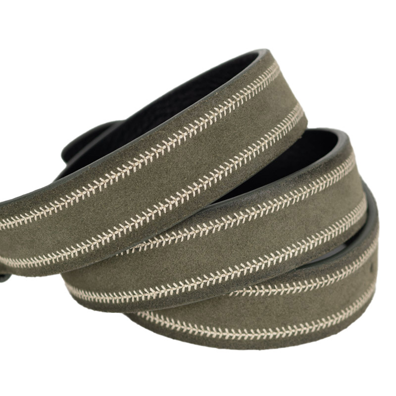 美しい縫製で一本一本丁寧に仕上げられた上質なレザーベルトは、耐久性と復元力に優れています。