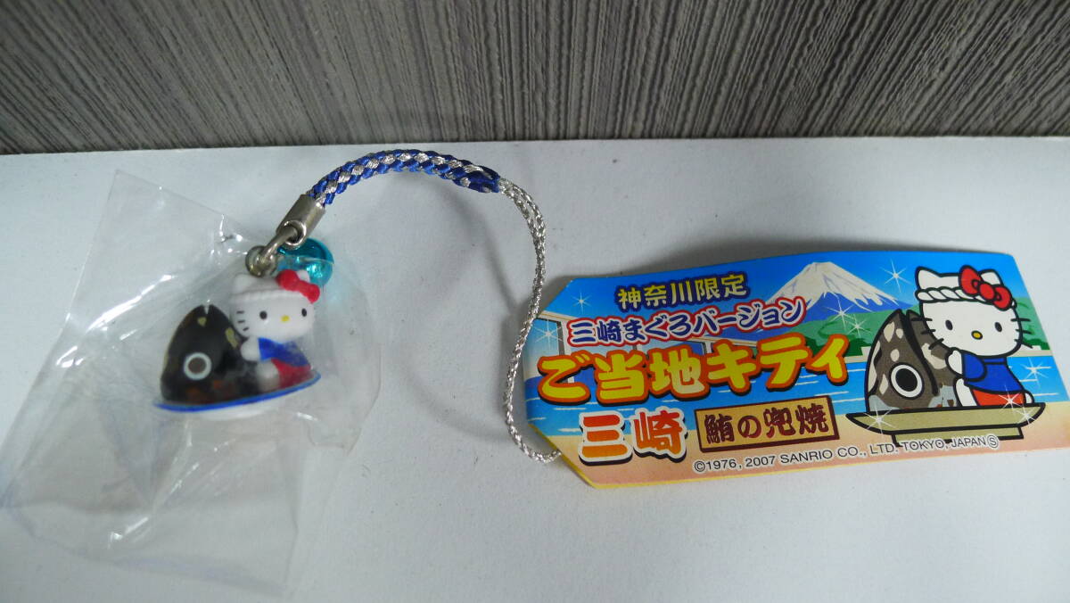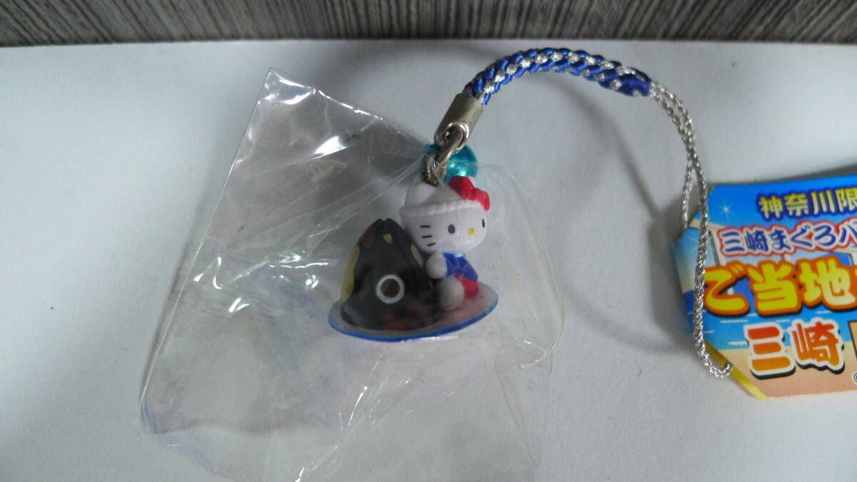 ハローキティ ストラップ チャーム サンリオ 神奈川限定、ご当地キティ三崎まぐろバージョン鮪の兜焼根付け 超希少!  新品 未開封品