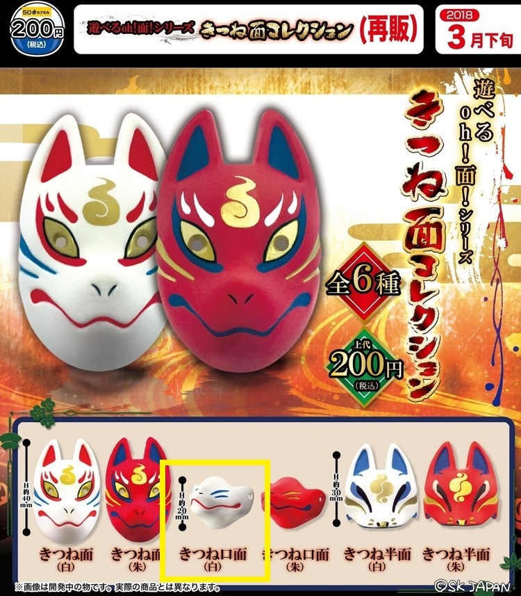 きつね面コレクション・きつね口面 白です。 未使用です。