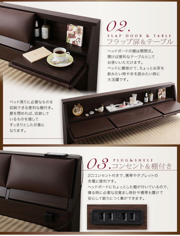 クッション・フラップテーブル付き収納ベッド Relassy リラシー ボンネルコイルマットレス付き ダブル【カラー:ダークブラウン】です。