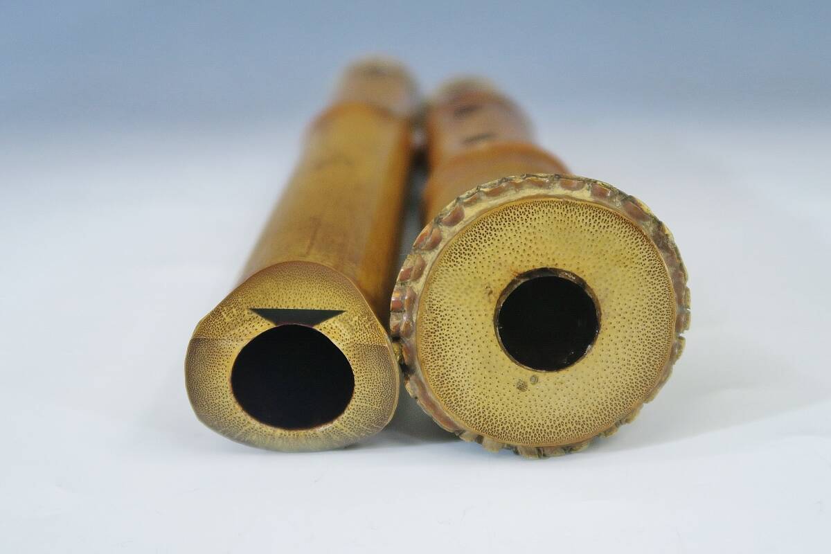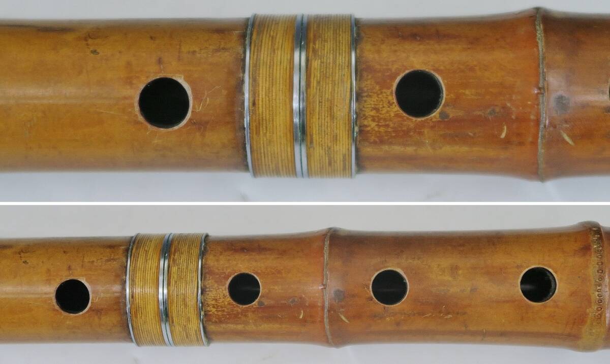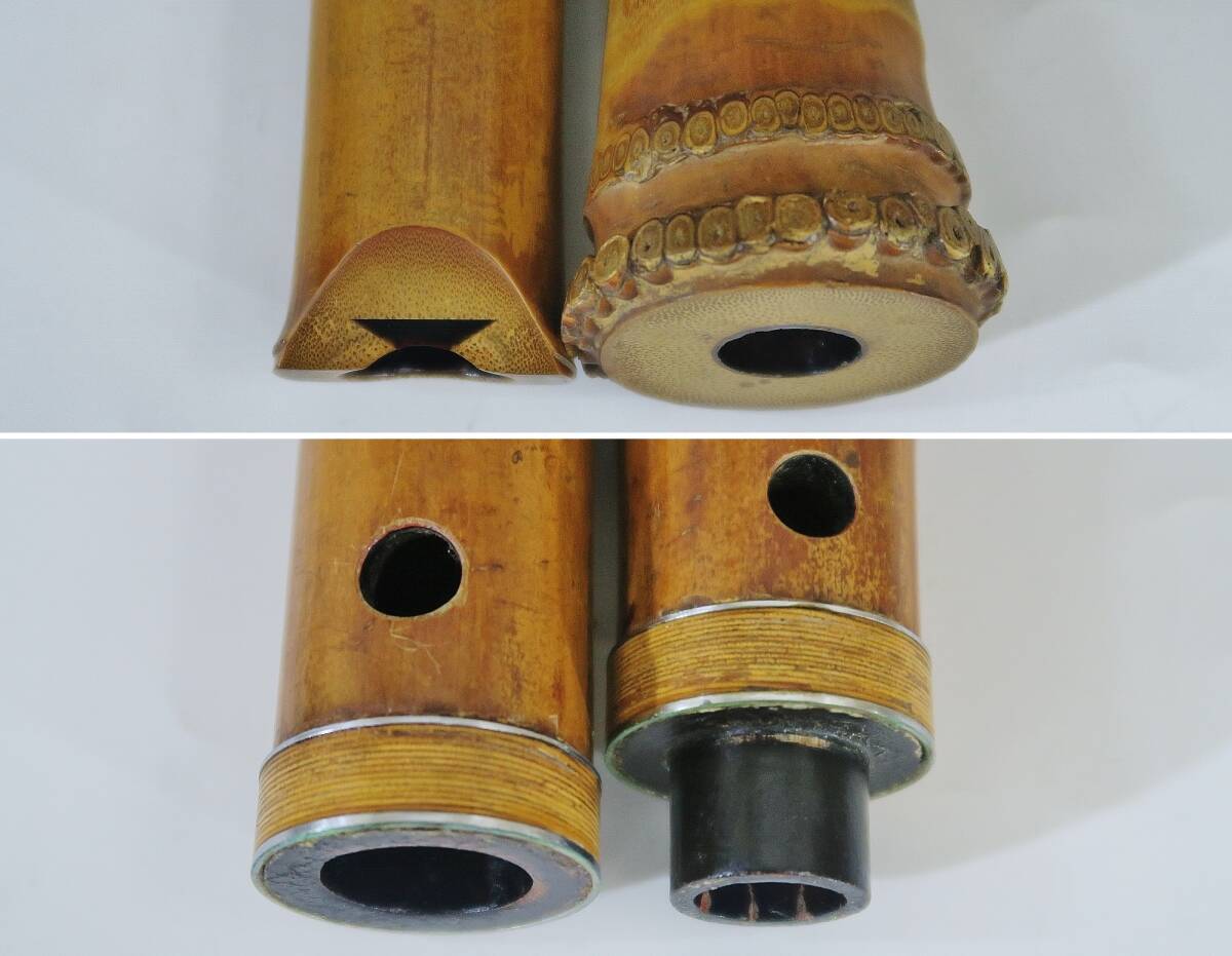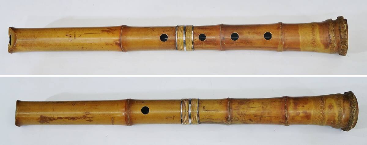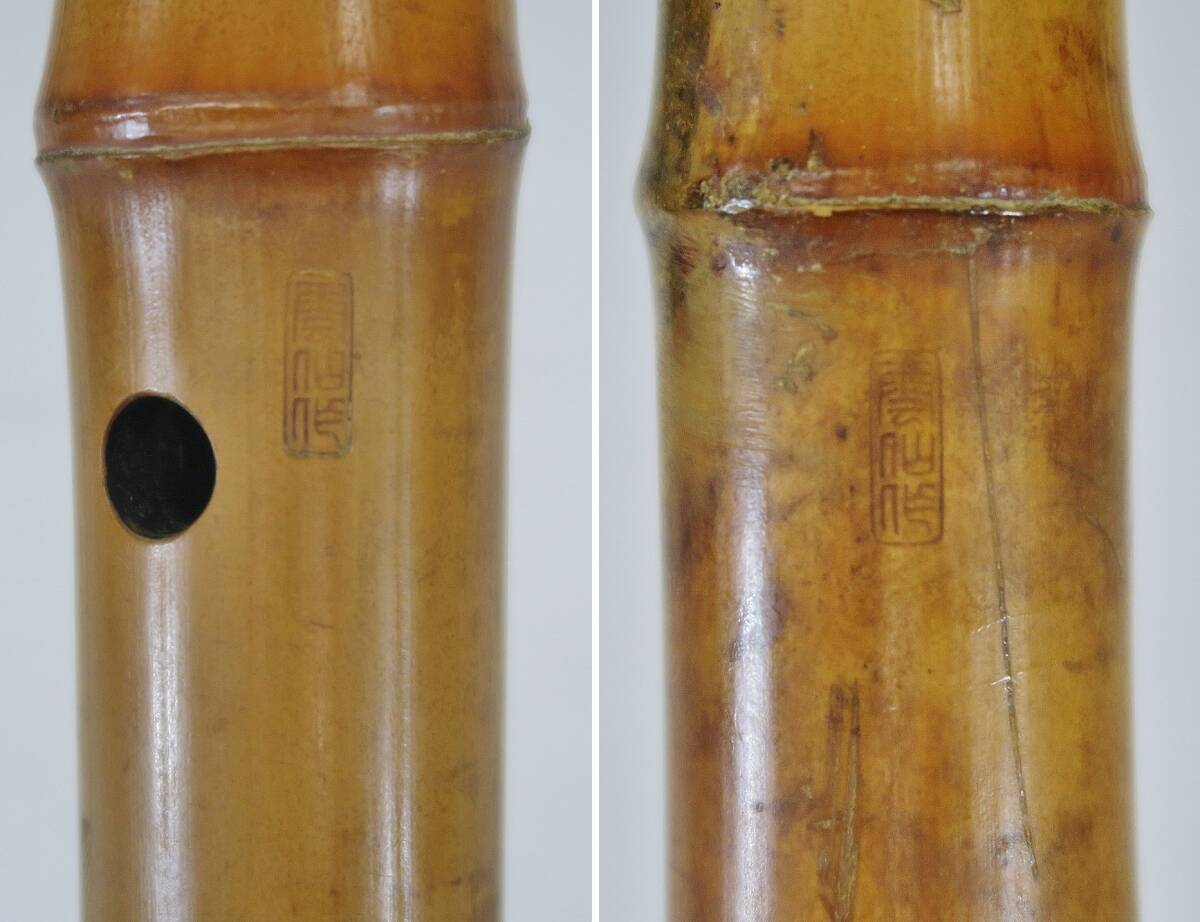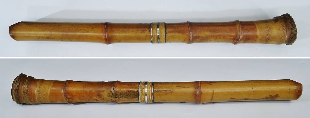 琴古流 在銘 尺八「雲仙作」二印 一尺六寸 銀三線籐巻中継 (5)(702