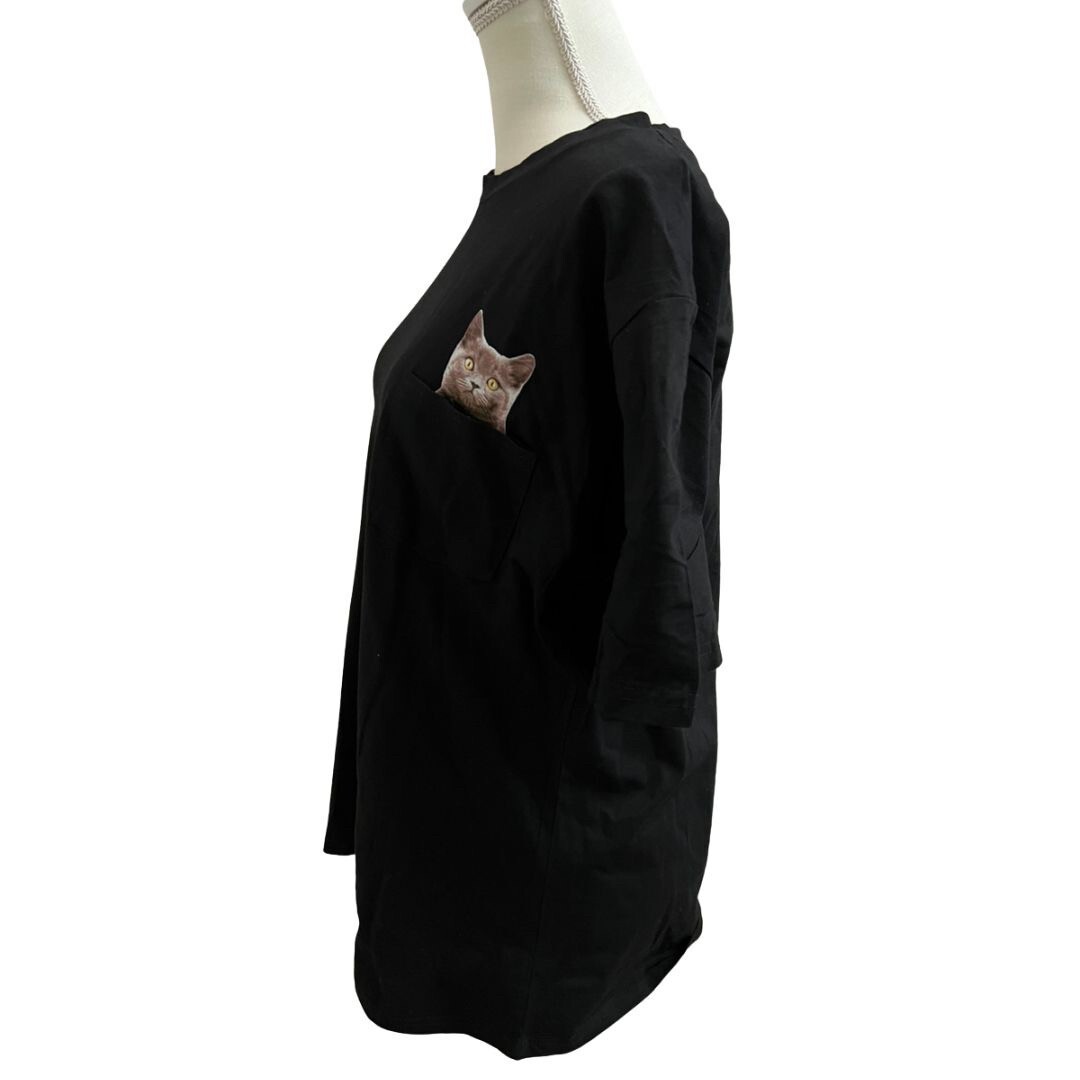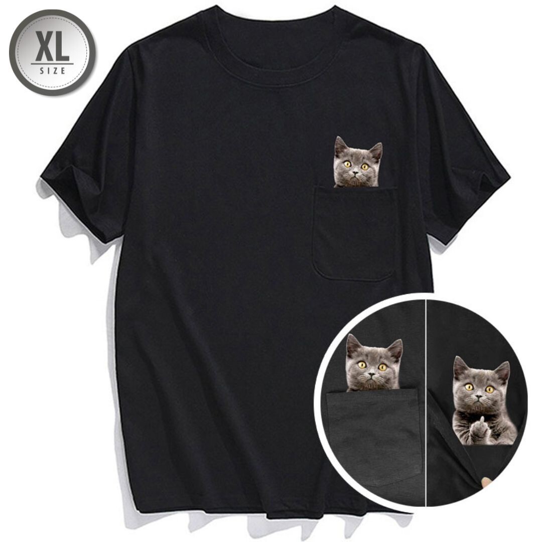 Tシャツ 猫 ポケット 中指立てる アニマル オルチャン オーバーサイズ 韓国ファッション メンズ レディース XLサイズ