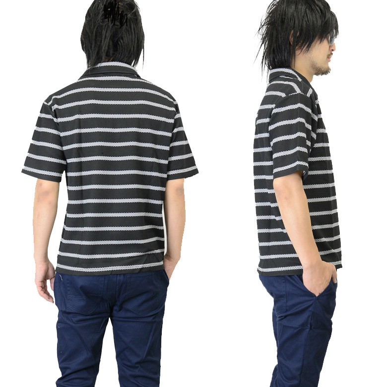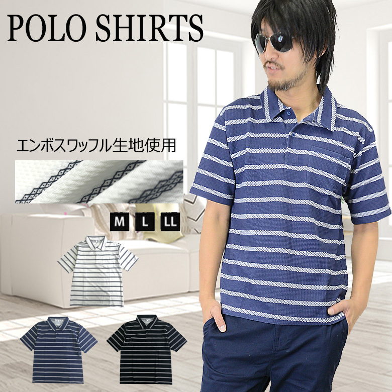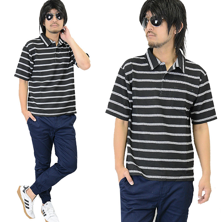 シンプルなポロシャツもデザインボーダーにする事で、一気に上品で大人っぽい雰囲気に。