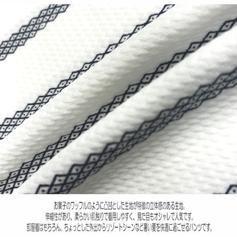 表面に凹凸感のあるストレッチワッフル生地を使用した独特な仕上がり。