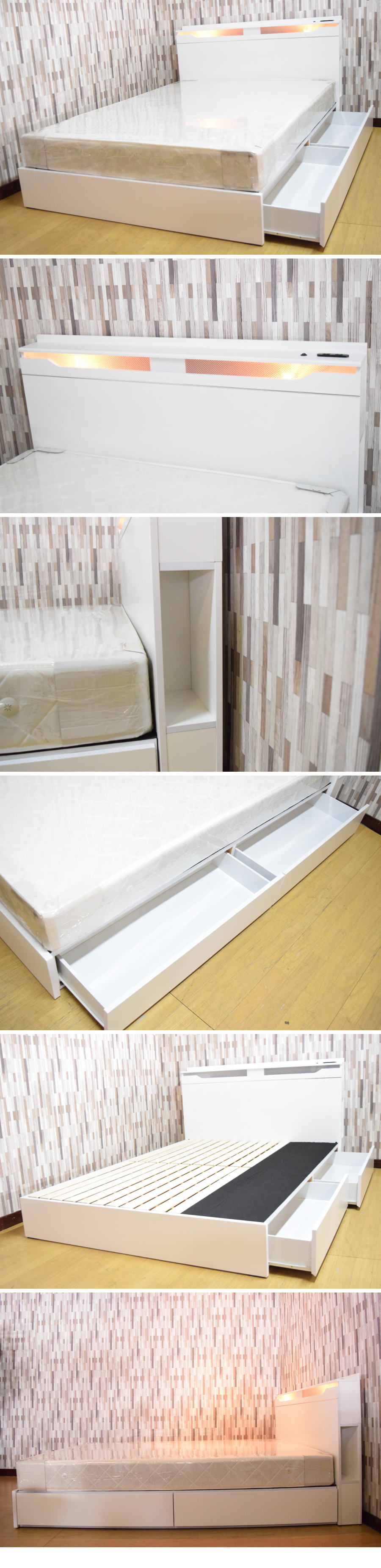 | 【限定送料無料 新品 展示処分品】F0527Iコンセント 照明 収納付き ダブルベッド |