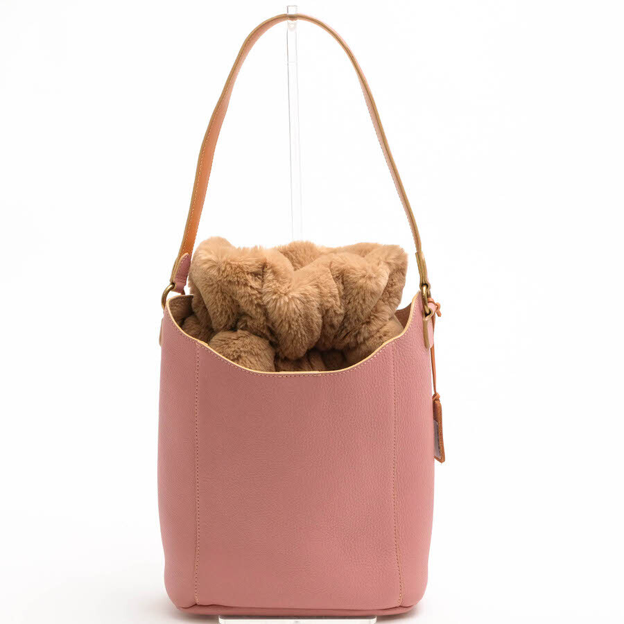| 休日の時間を丁寧に過ごす女性に向けて作られれた「SUNDAYS BAGS」シリーズのエレガントで実用的なバッグ。素材には、エコファーと柔らかなソフトキップレザーが使用されており、それぞれが単体で使用できるよう設計されています。台形の筒型サイズ(バケット型)であり、荷物の収納に優れています。インナーバッグはフェイクムートンを使用し、バッグ本体は、イタリア製の牛革(ソフトキップレザー)と真鍮を使用し、クロムを含まない合成タンニンで鞣された生後8か月~12か月の牛革から作られています。 |