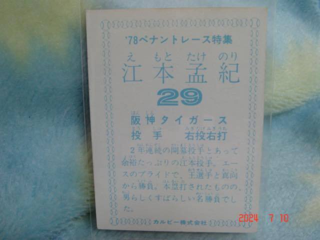 カルビー '78年 プロ野球カード 『'78ペナントレース特集』(江本/阪神)美品