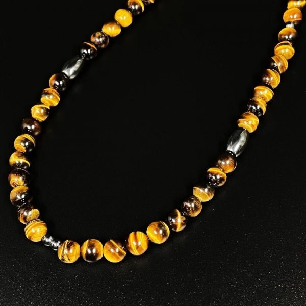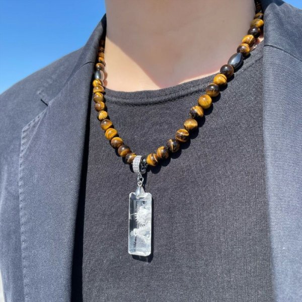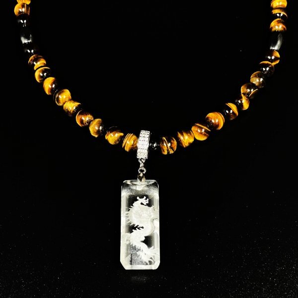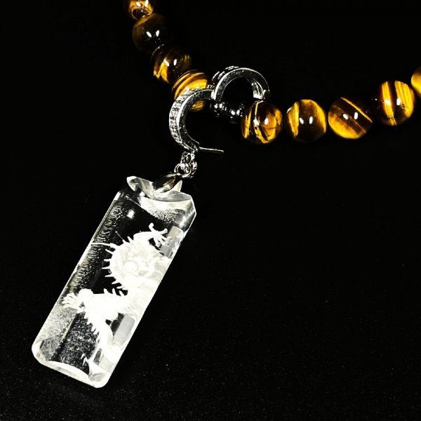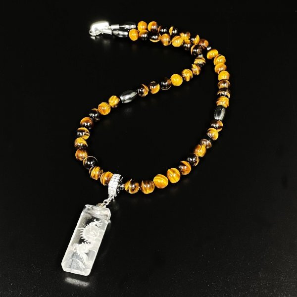 浮彫龍 水晶ペンダント タイガーアイ ヘマタイト 磁気 ネックレス 長さもセレクトできる セミオーダー 開運 天然石 数珠 お守り効果 ギフト