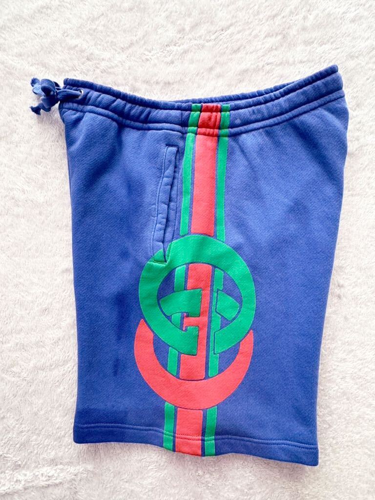 ・風合いの良い上質なスウェット生地を使用し計算されたモダンなシルエットにグッチの象徴とも言えるインターロッキングをペイントしたデザインや単調にならないよう表情を持たせた色ムラのような加工がデザイン性高くとてもお洒落なショーツ、ショートパンツになります。