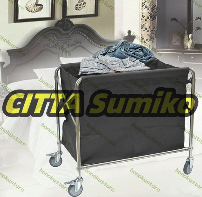 ホテルリネンカート 折りたたみ式 ランドリーワゴン サービスカート ホテ 学校 病院 工場 業務用ハンドトラック 87*52*83CM ブラック
