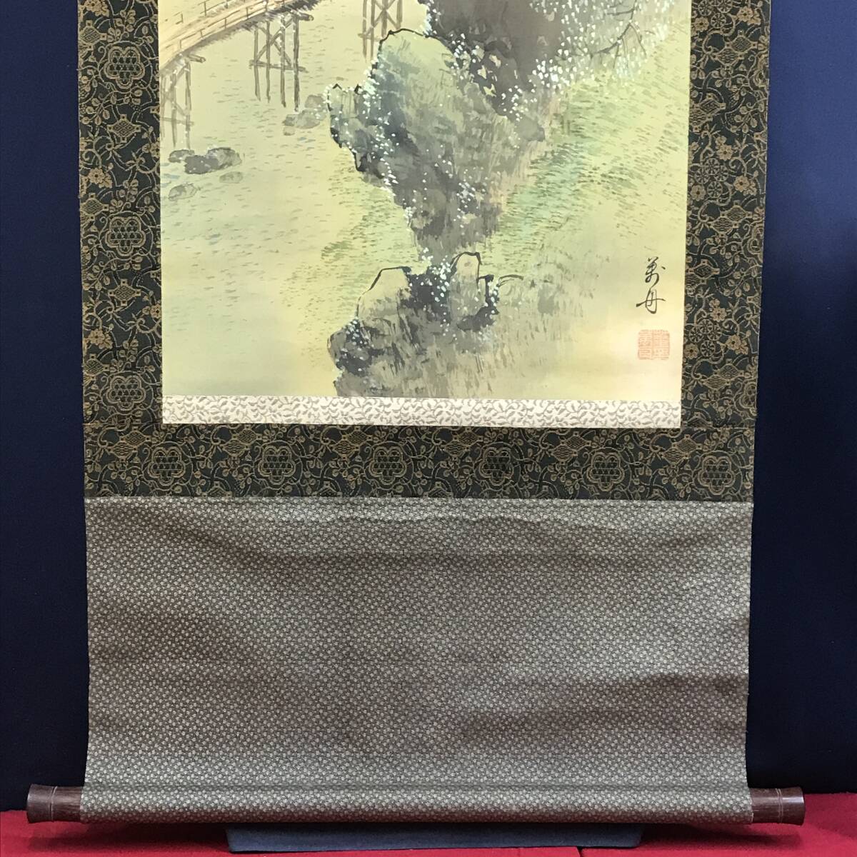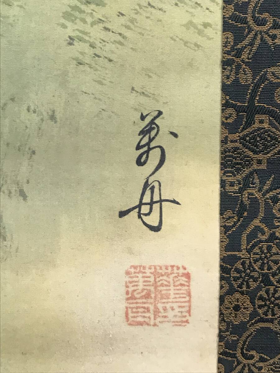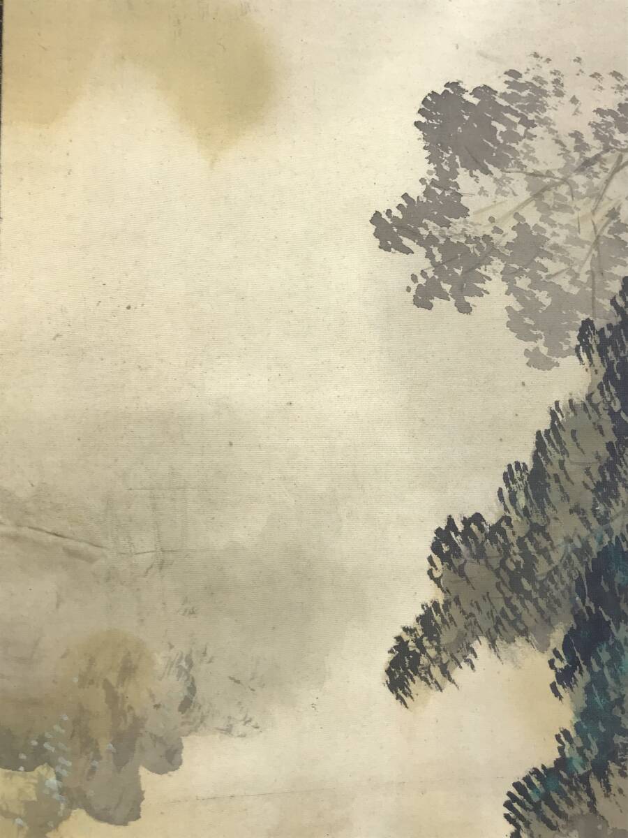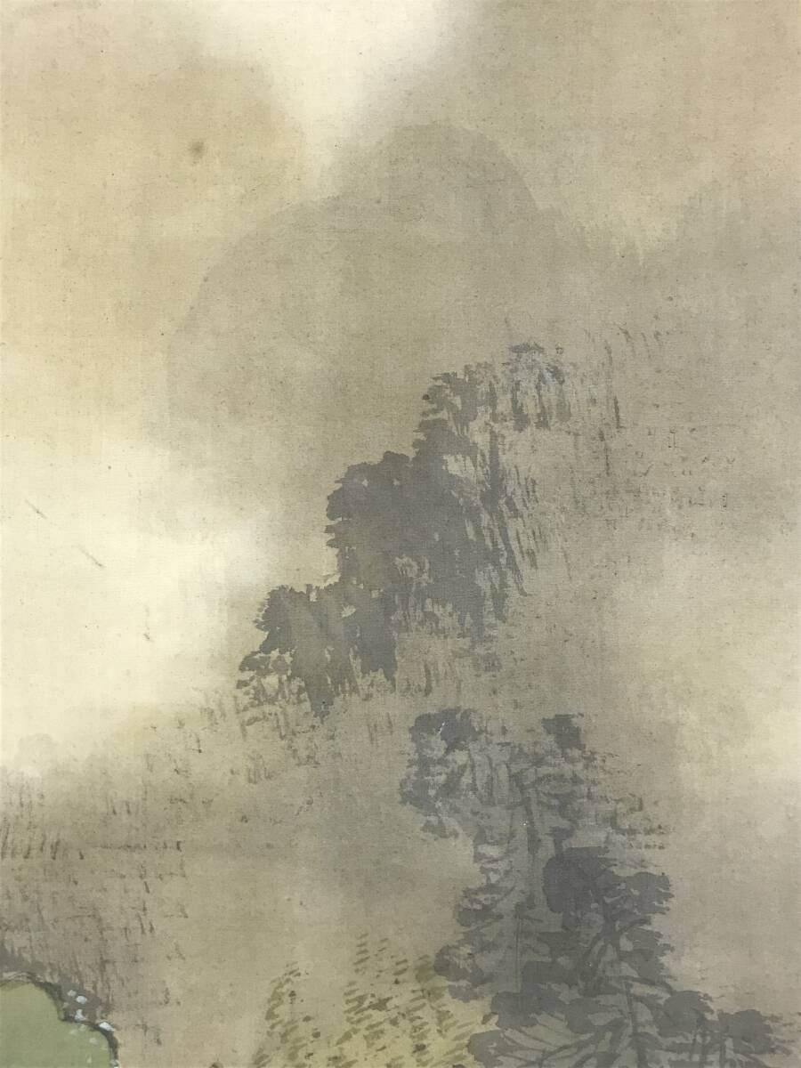【作品状態】 本紙は絹本肉筆です。本紙は薄汚れ、多少の汚れシミあります。表装は薄汚れ、汚れシミ、多数の折れ、巻シワあります。天に一ヶ所の欠損あります。