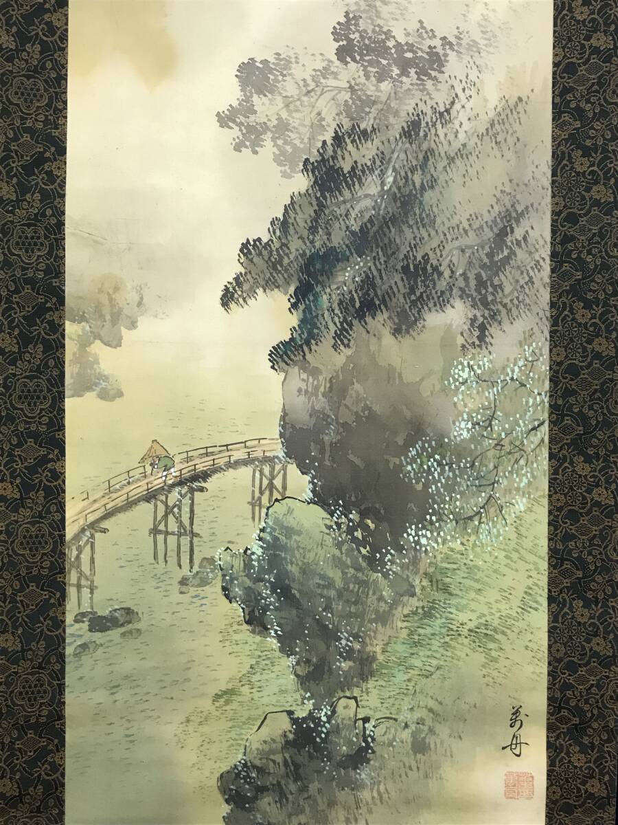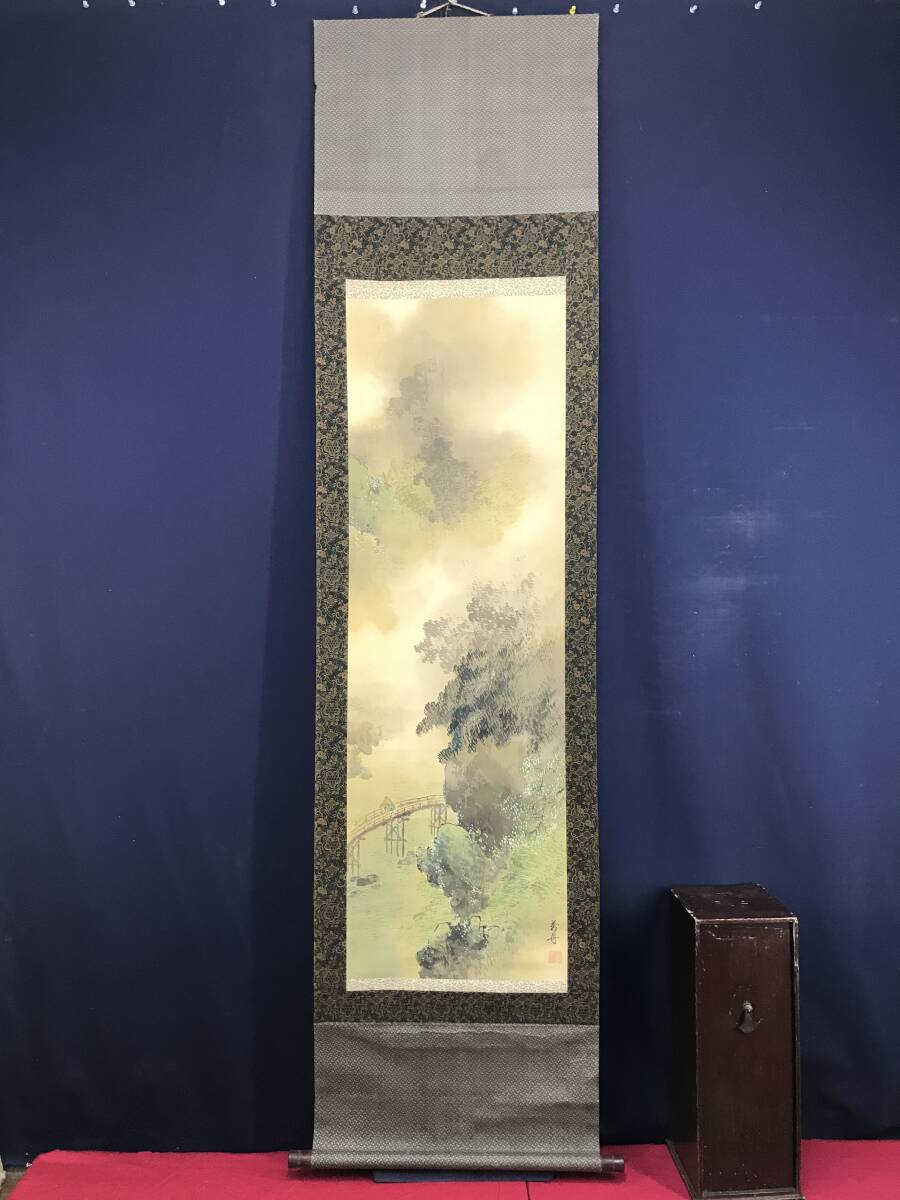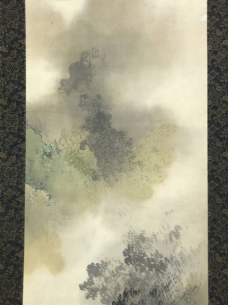 真作/萬舟/山水図/雨中山水図/青緑山水図/掛軸☆宝船☆AG-326