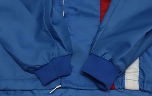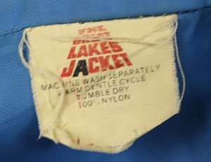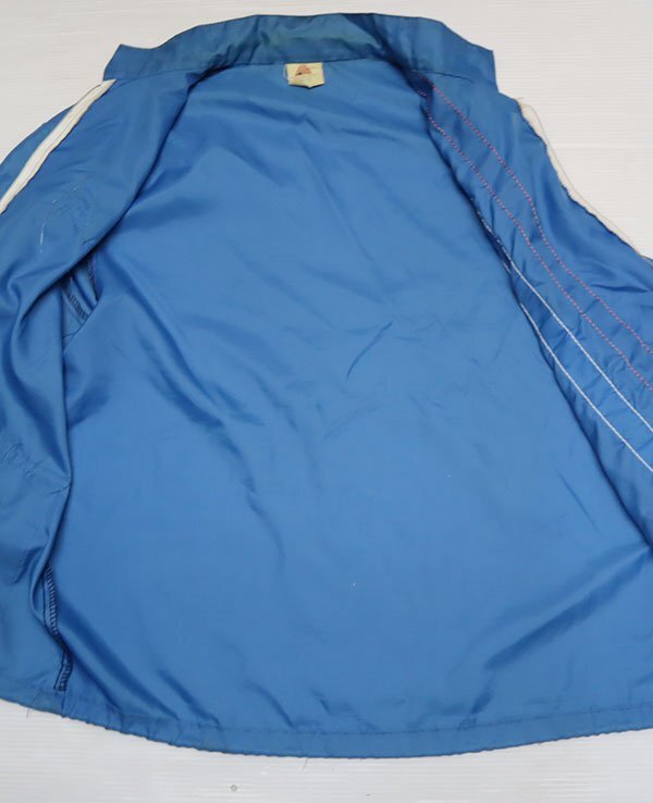 アメリカ買い付けの80’S頃のアメリカ製(表記はございませんが)LAKESのナイロンジャケットの青系x赤系x白系ラインのIDEAL製ZIPです。