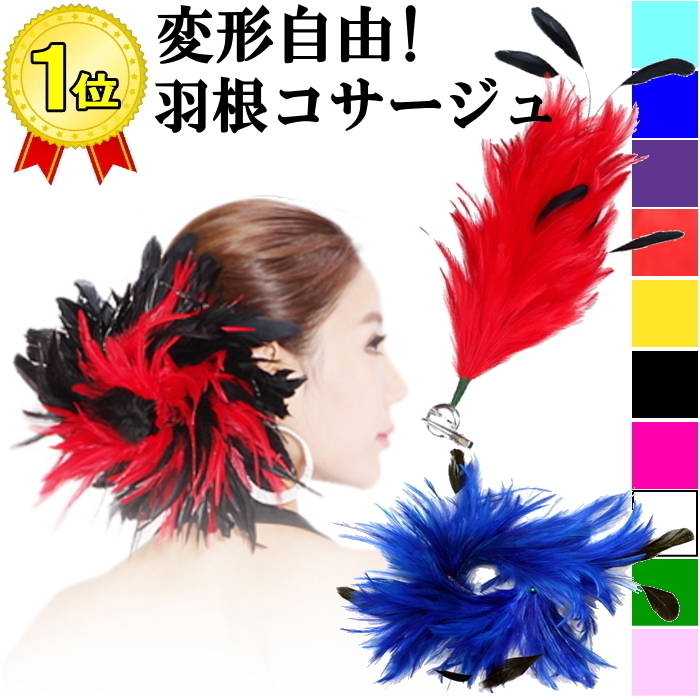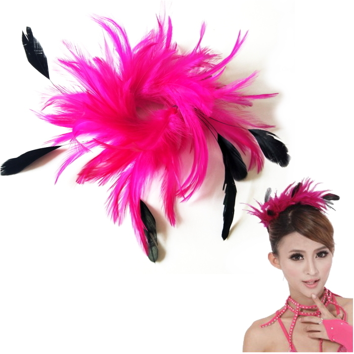 羽根 ビック コサージュ ヘッドドレス【ピンク】髪飾り ダンス 衣装 パーティードレス ヘアアクセサリーcy399-p0