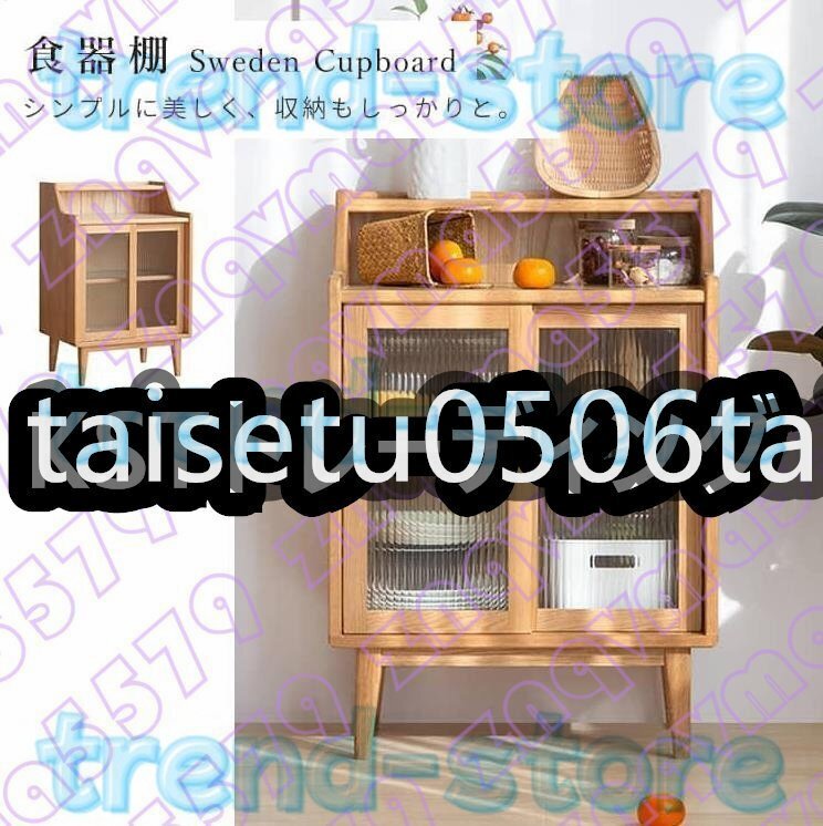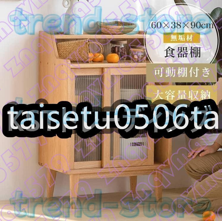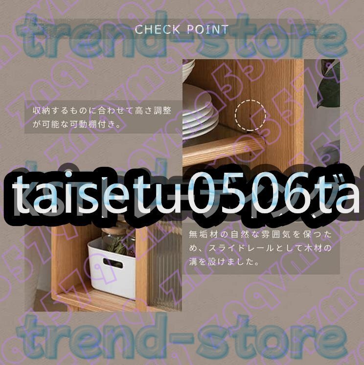 人気推薦 食器棚 幅60cm 棚 引き戸 キッチン収納 シンプル 木製 オープンタイプ モダン ナチュラル モールガラス オーク材